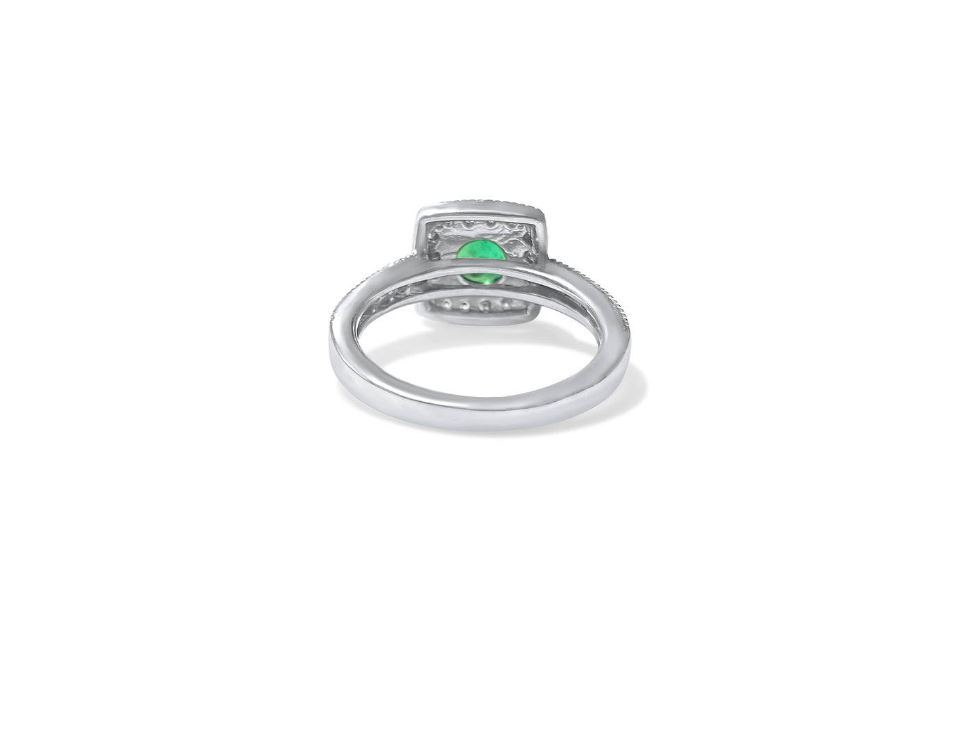 14k white gold. 0.60 carat diamond, round brilliant cut. VS-2 clarity and G color. 1.50 carat emerald. Total carat of...