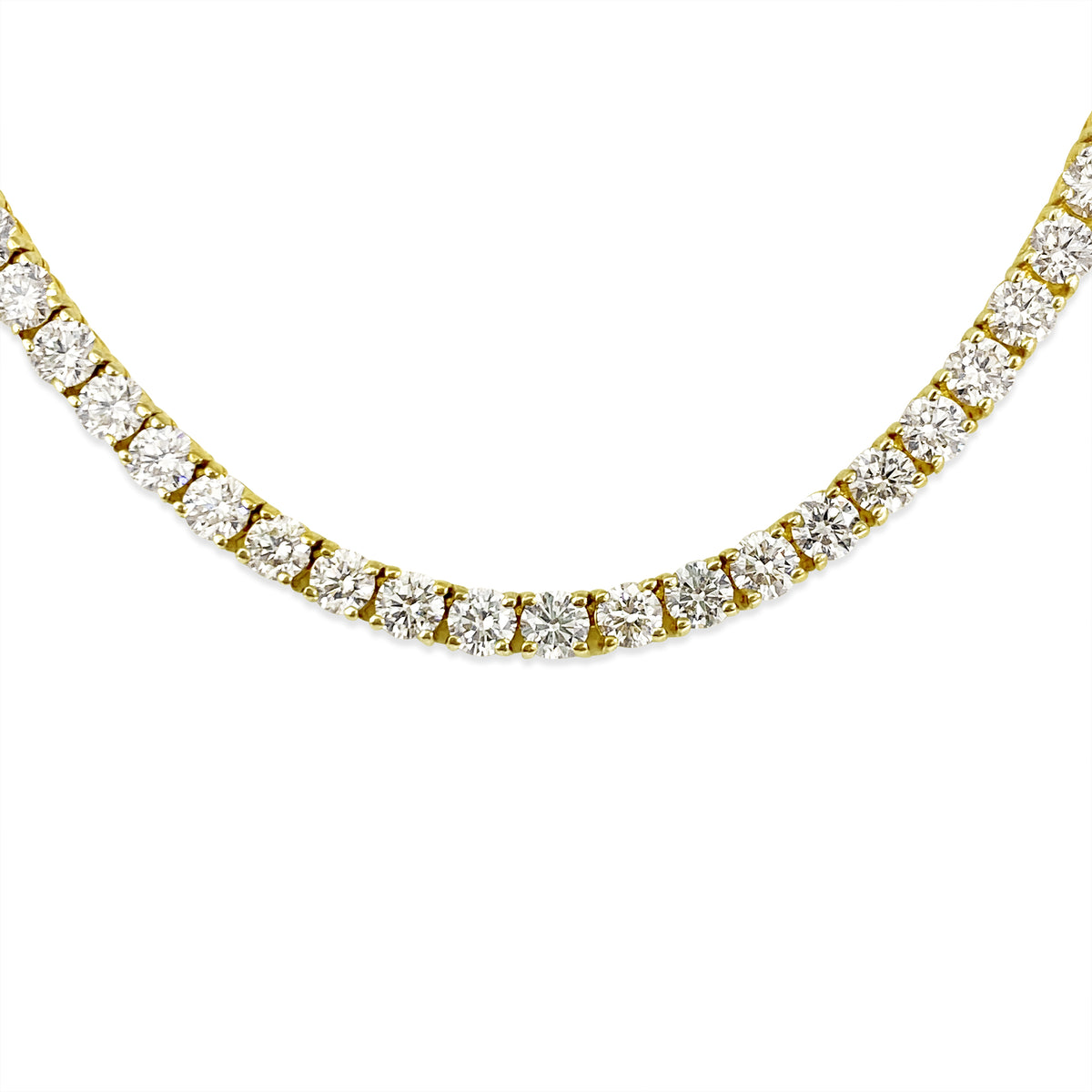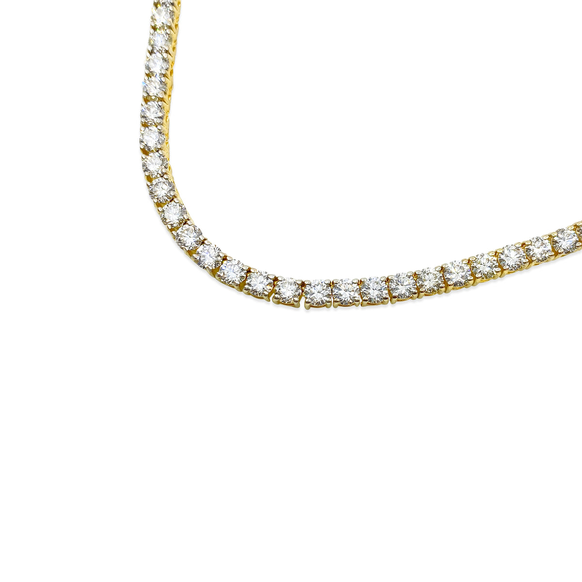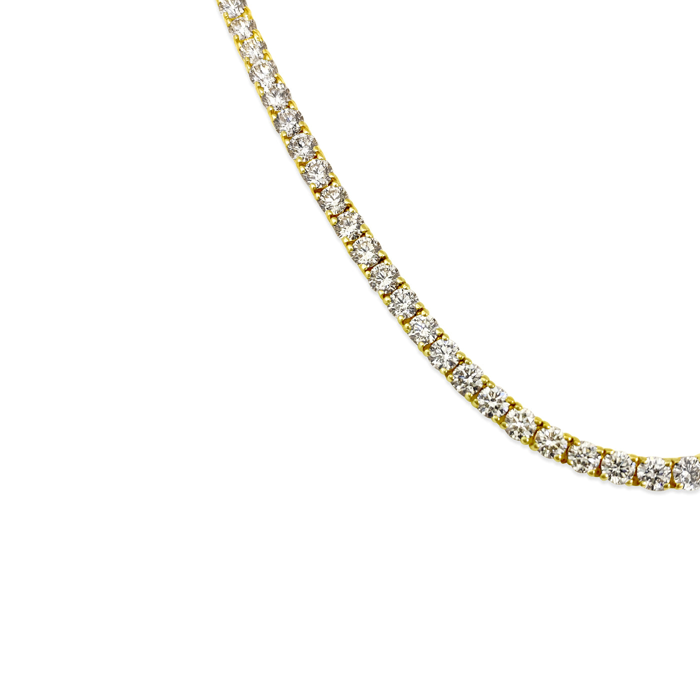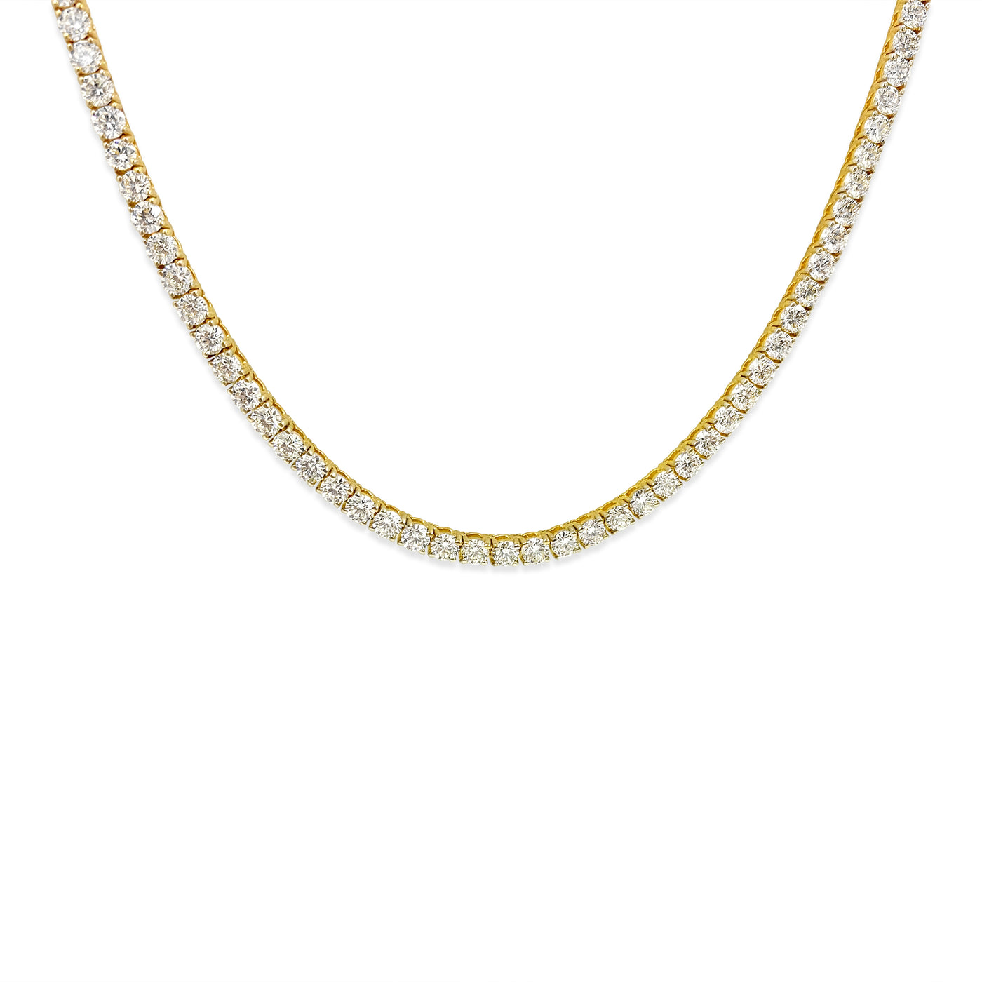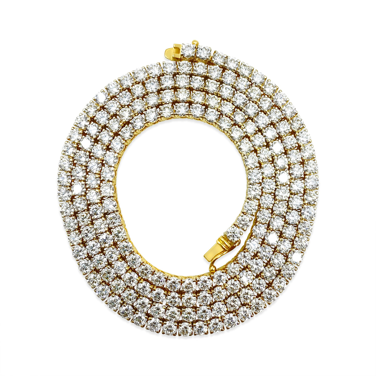 Gorgeous big pointer diamond tennis necklace. Round brilliant cut diamonds.  Unisex jewelry. Metal: 14K yellow gold. Diamonds: 23CWT. VVS-VS clarity. H...