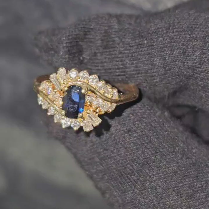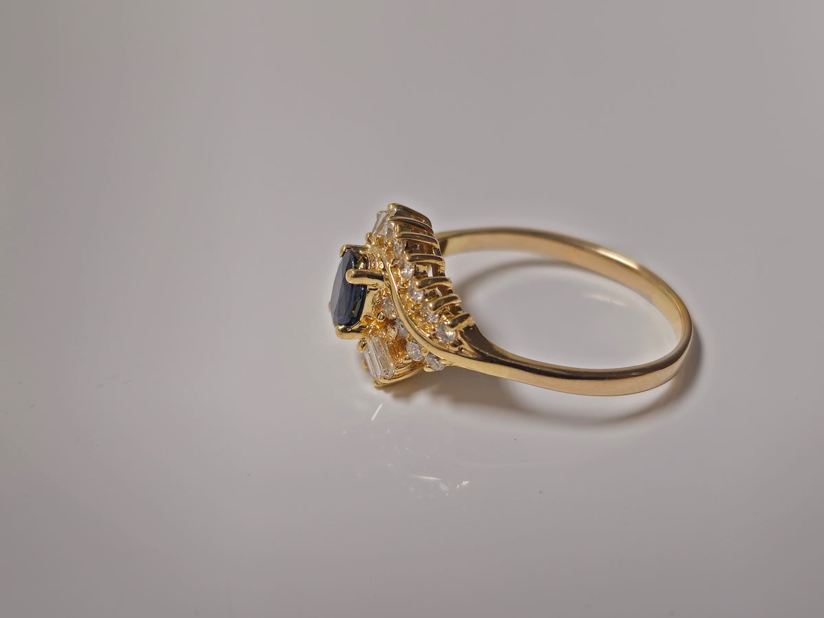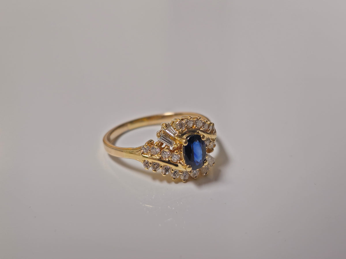 14k Gold Natural Blue Sapphire and Diamond Ring