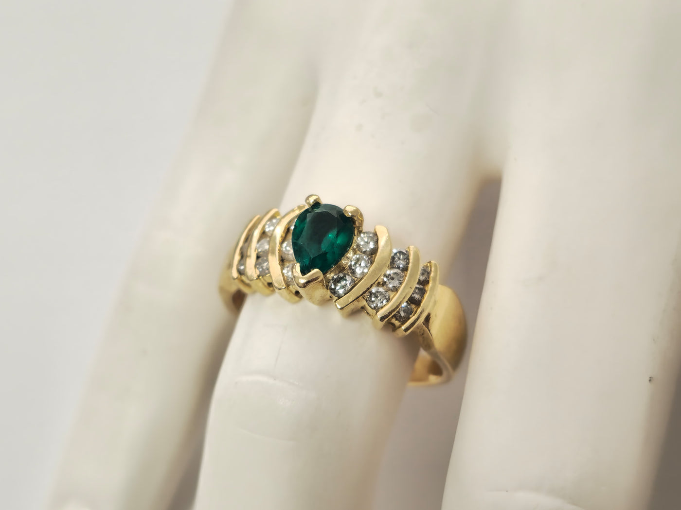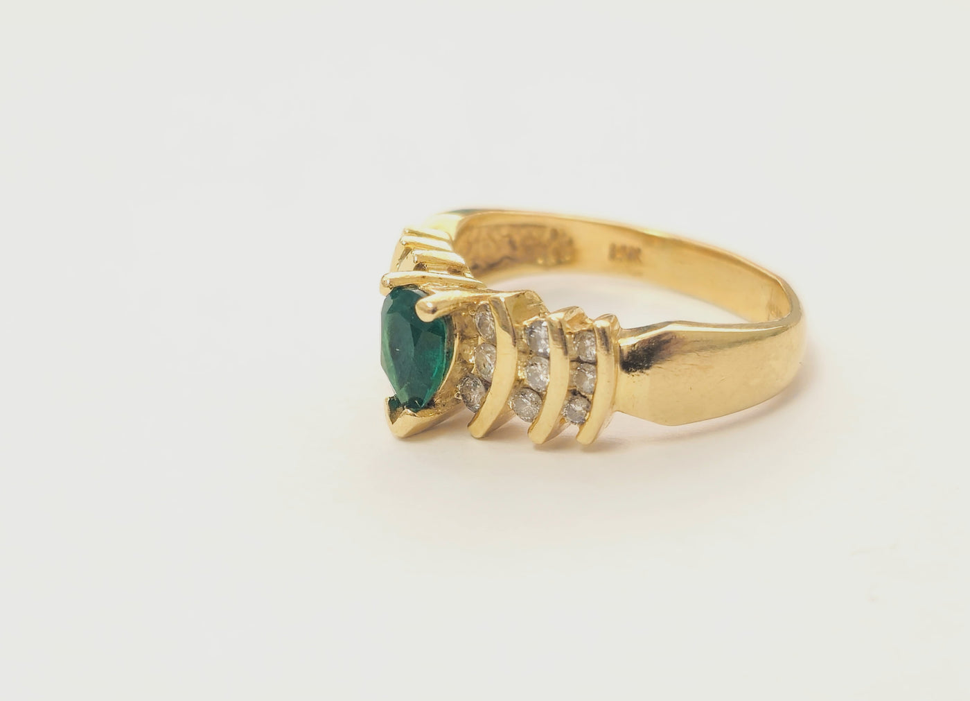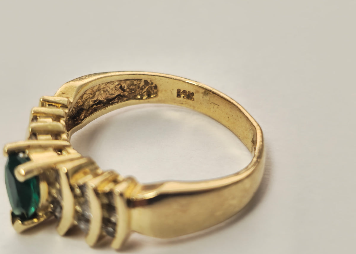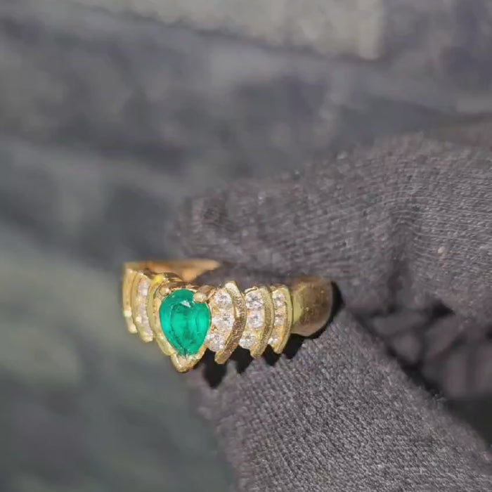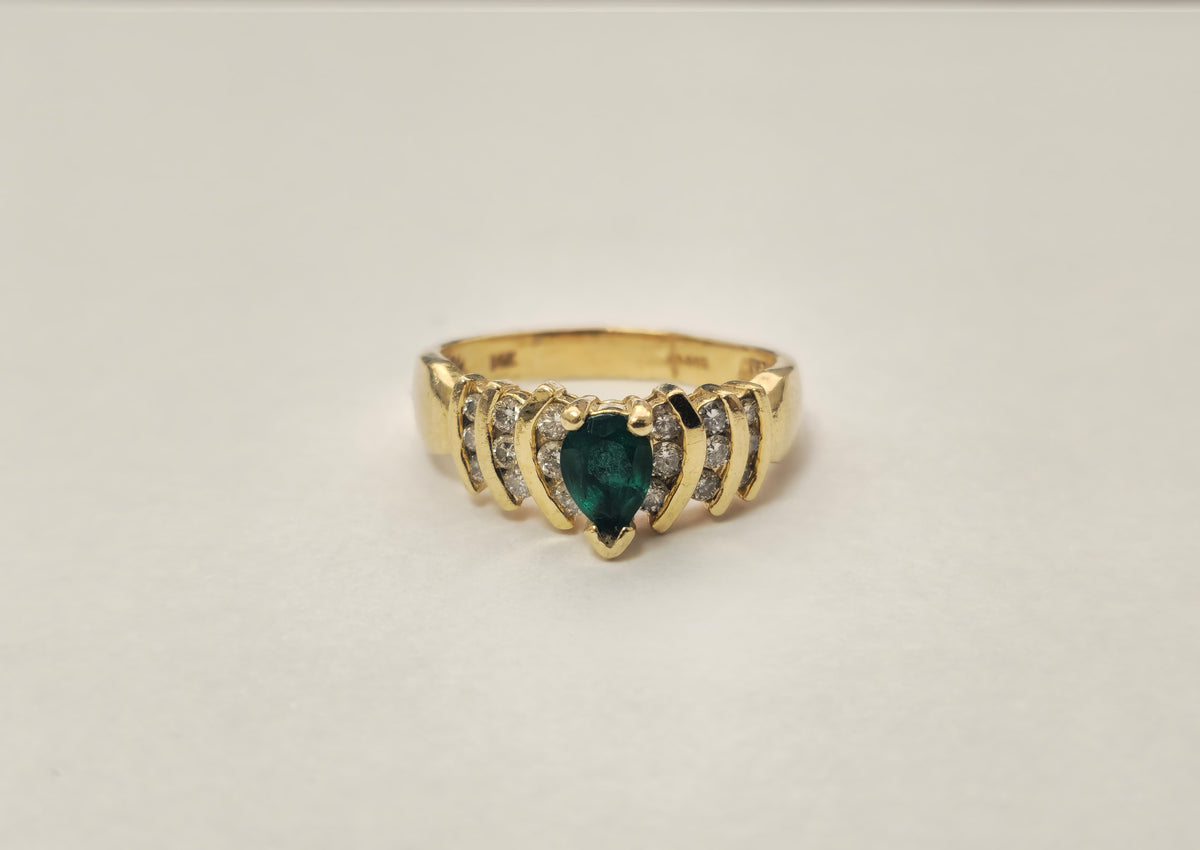 14k Gold Pear Shaped Emerald and Diamond Ring