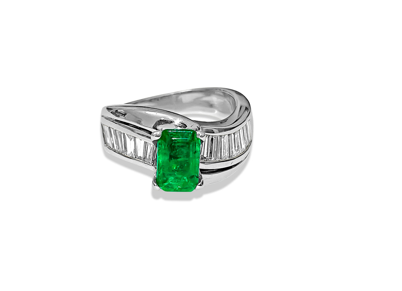 Gorgeous ladies emerald and diamond engagement ring. Perfect emerald ring for her. Metal: Solid 14k white gold. Center stone: 2.00ct...