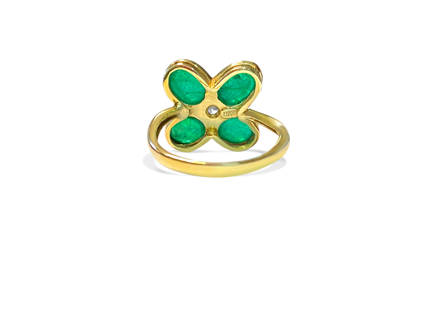 Extremely beautiful ring. 18K Yellow Gold. 8.50 CT Colombian emerald. 0.35 CT diamond. VS clarity and F-G color.