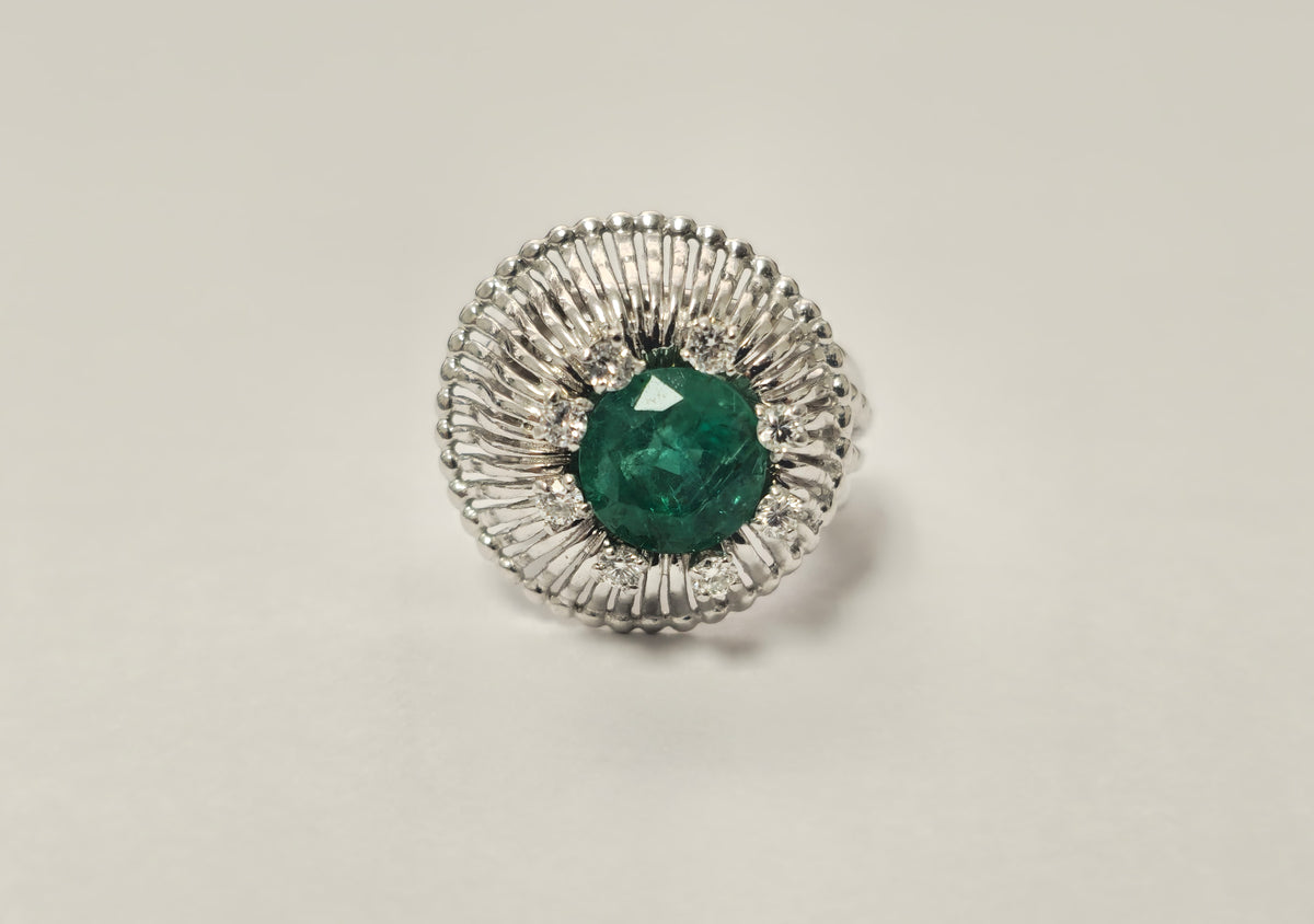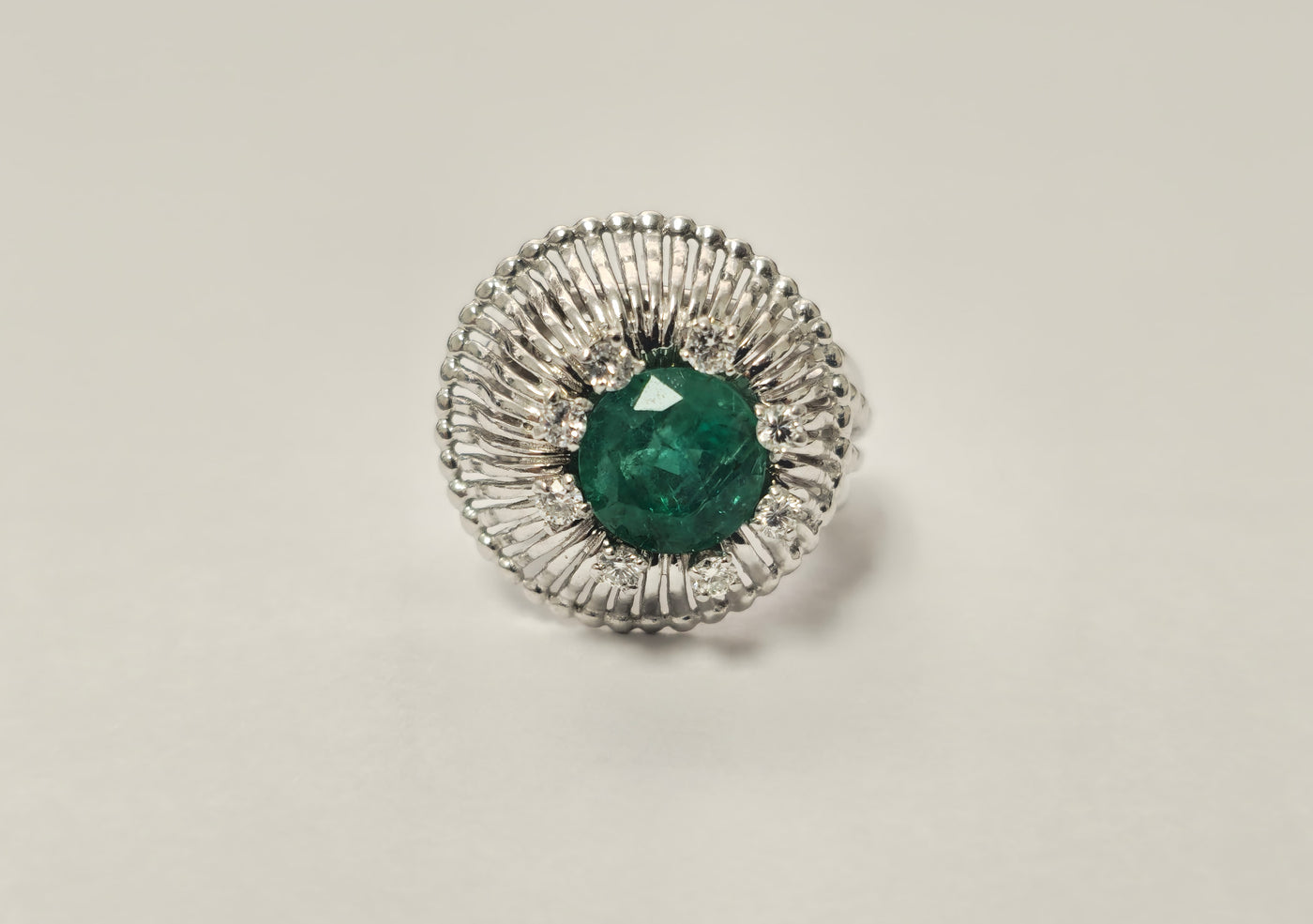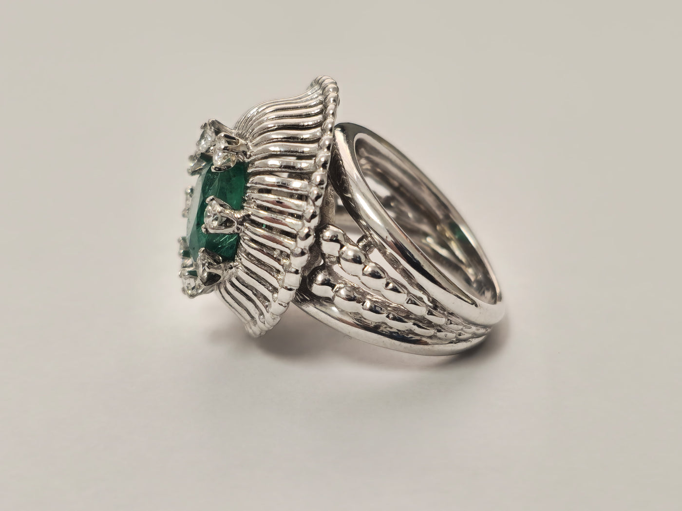 2.50ct Emerald and Diamond Ring in 14k White Gold