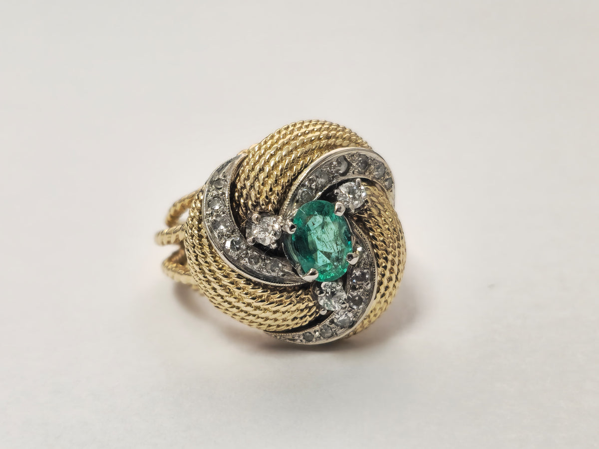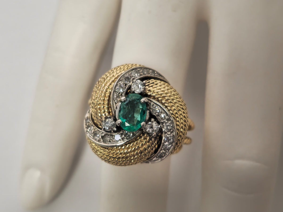 Natural Colombian Emerald & Diamond Ring in18K Gold