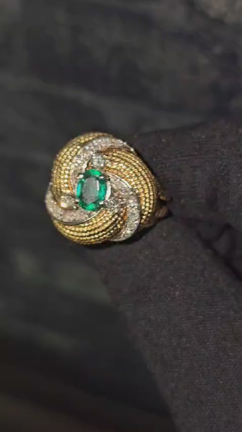 Introducing an elegant 18k gold ring featuring a vibrant 1-carat Colombian natural emerald and 0.80 carats of sparkling diamonds, available...