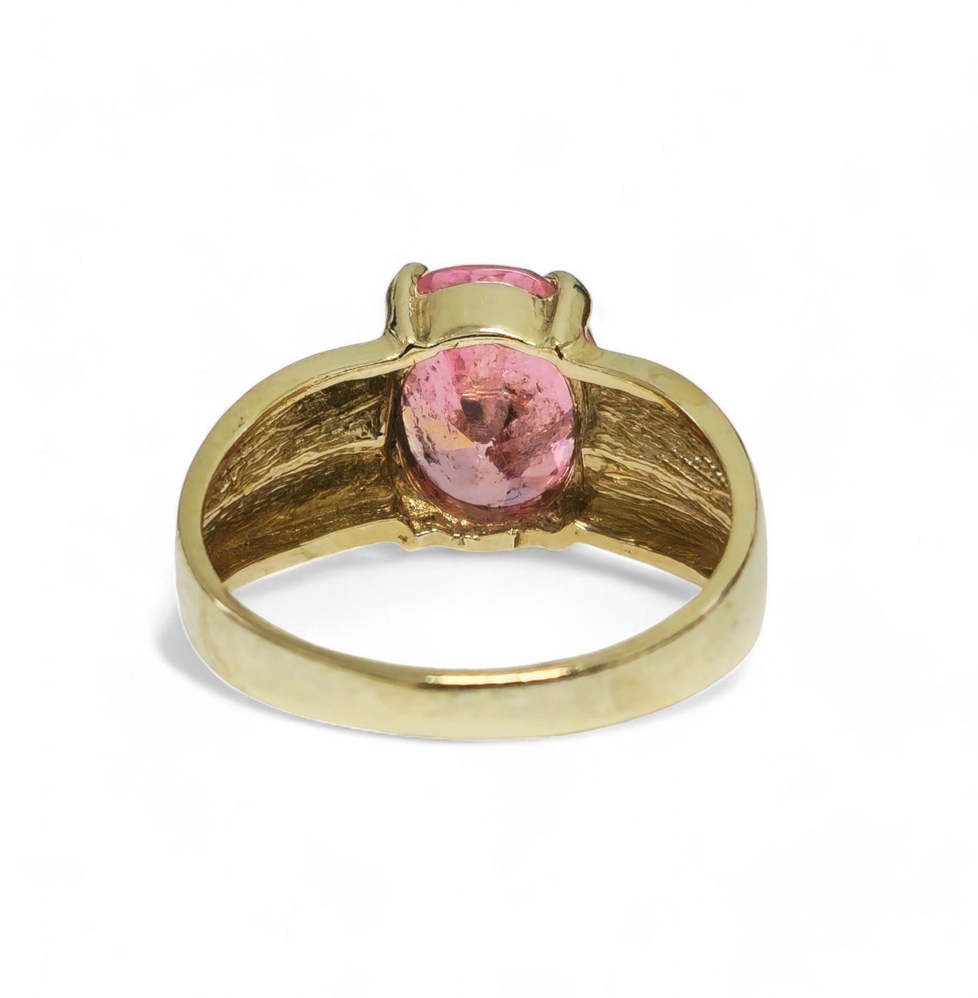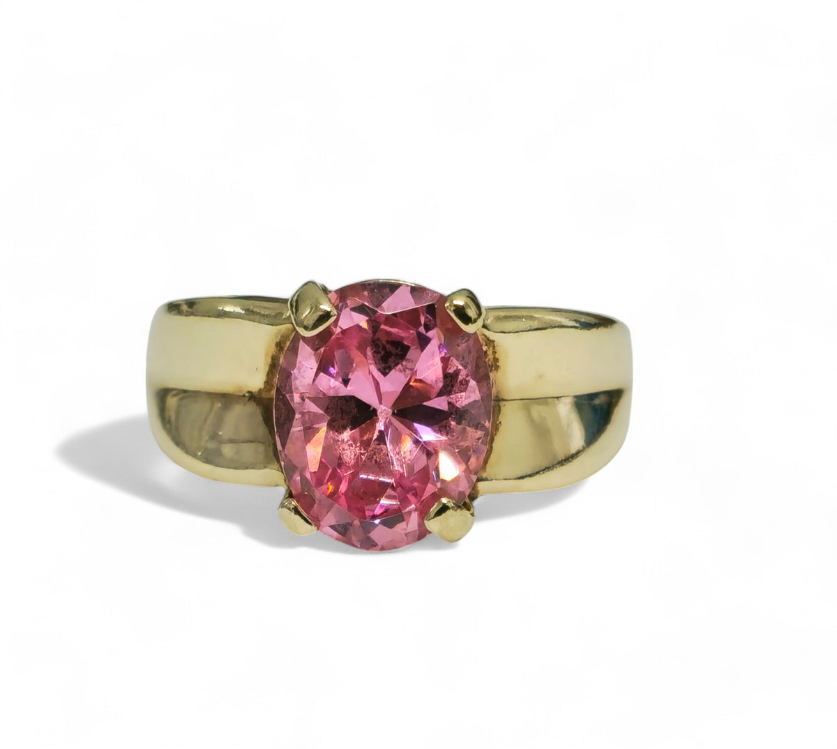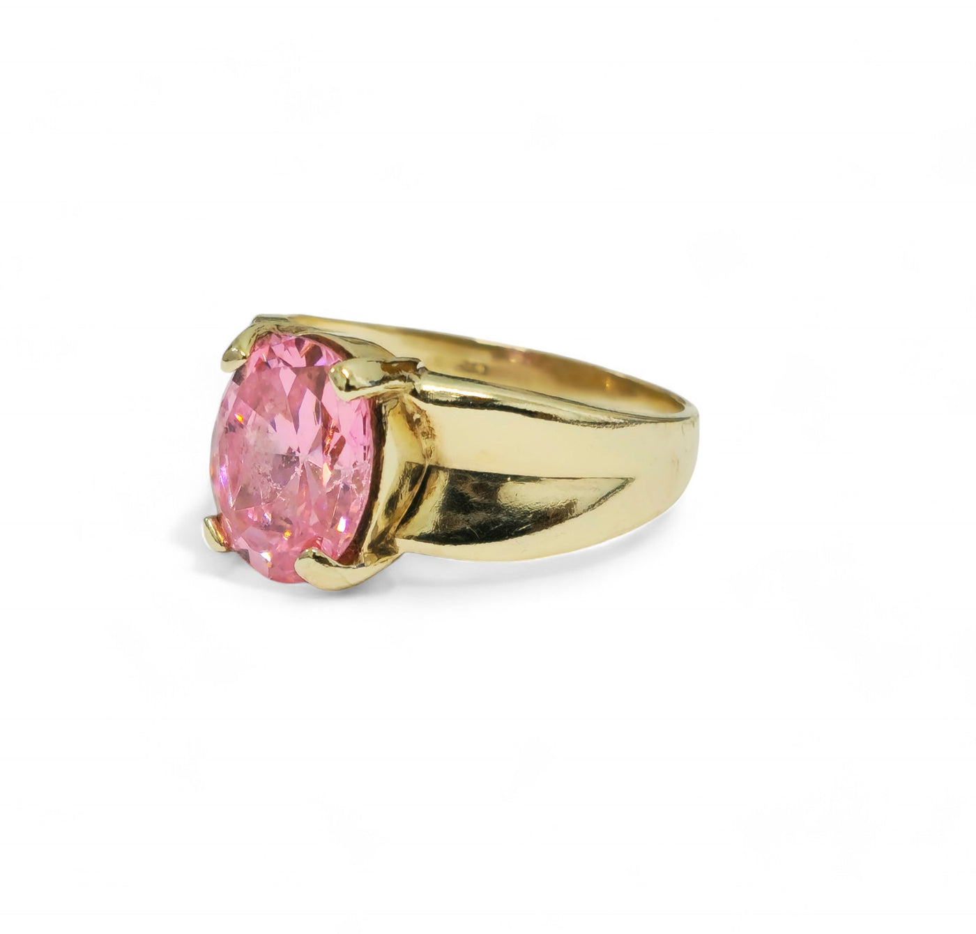 Stunning 10k gold ring featuring a 2.7ct pink topaz center stone. Pink topaz center. 2.7ct. 3.3 grams. Ring Size: US...