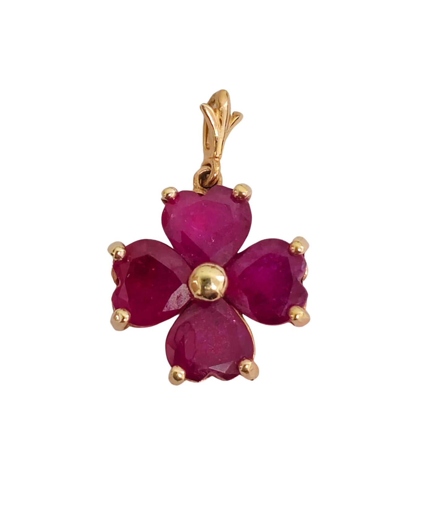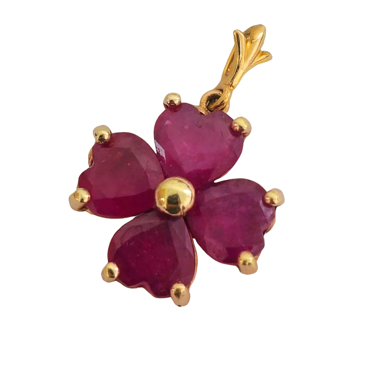 Beautiful 14k gold heart-shaped pendant showcasing 3 carats of vibrant ruby. Heart ruby pendant. 14k gold. 2.1 grams. 0.80 x...