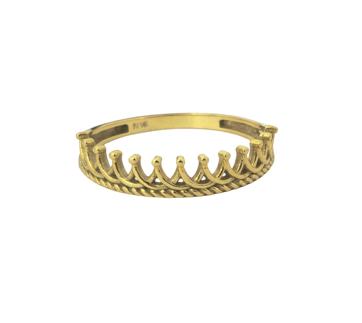Delicate and regal, this crown-motif ring is crafted from 14k gold and weighs 1.50 grams. 14k gold crown motif ring....