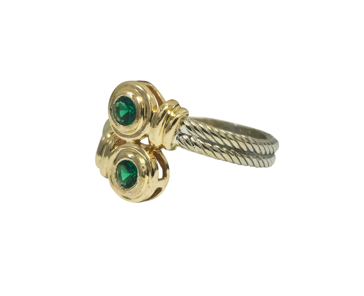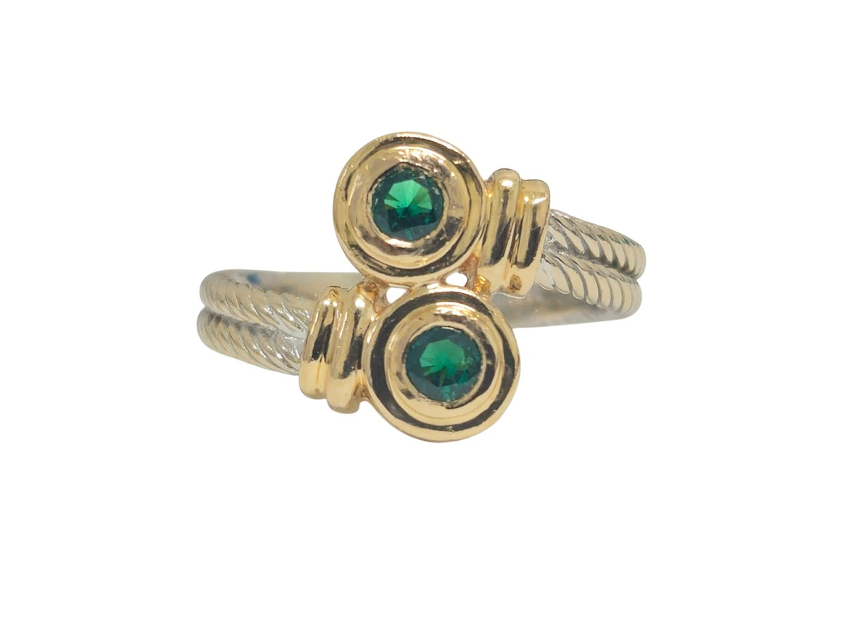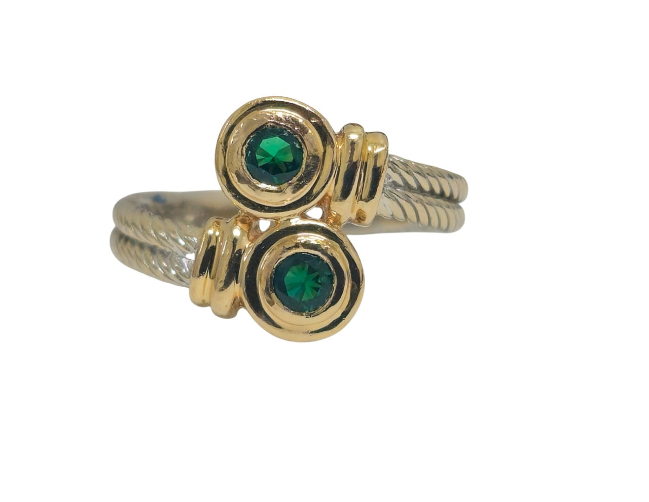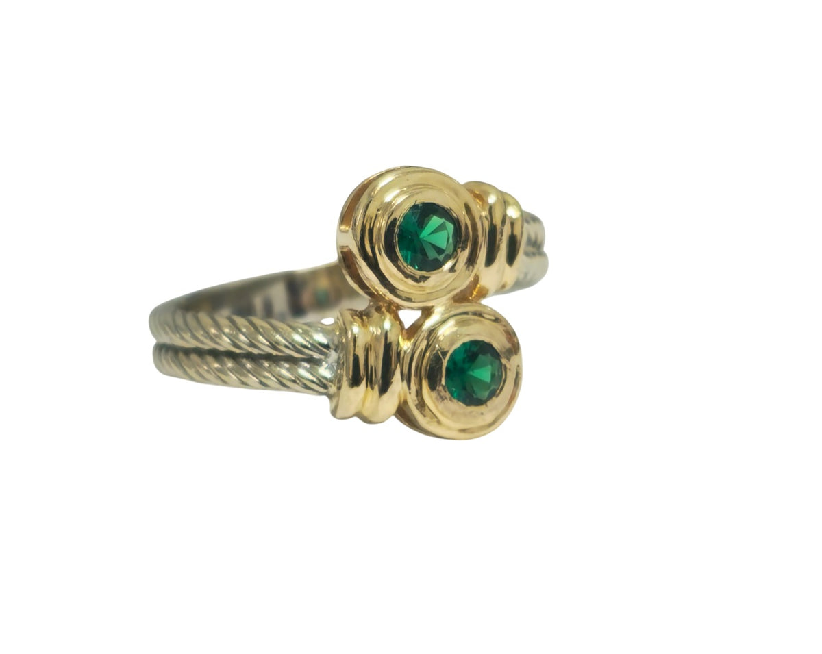 14k Yellow and White Two Tone Ring Metal: 14k two tone ring (yellow and white)  2cwt round. Natural emerald. Total...