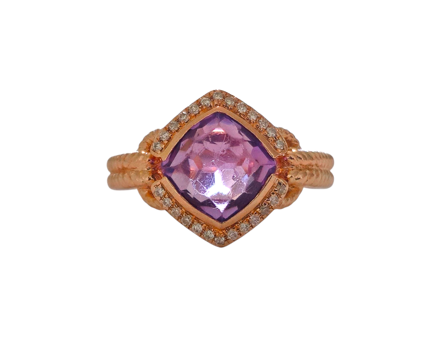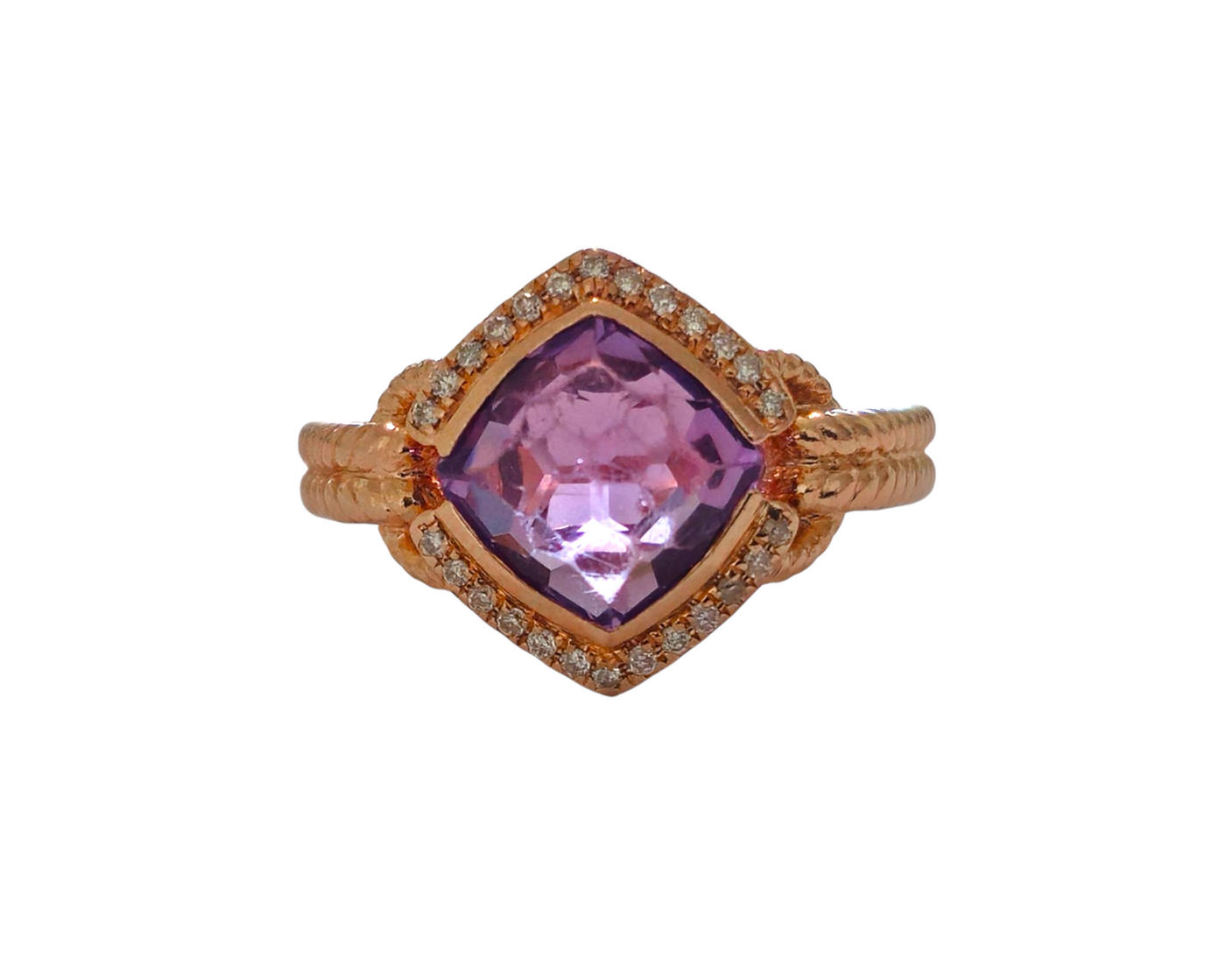 4 carat Amethyst & Diamond Ring 14k Rose Gold