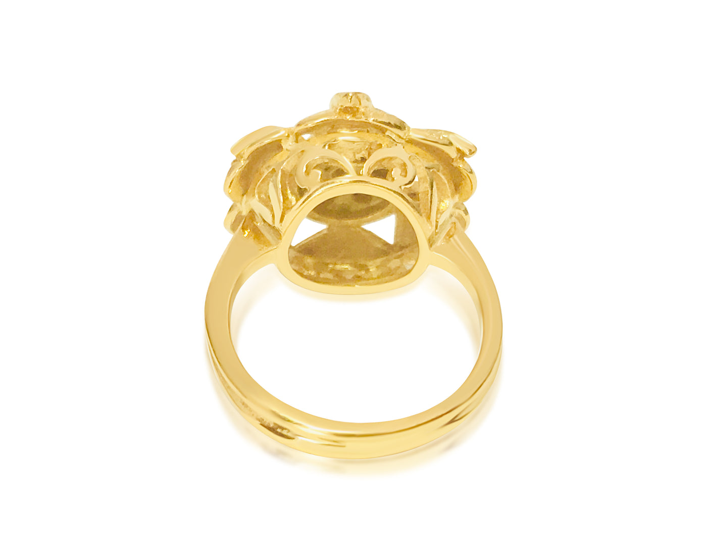 Gorgeous open flower inspired vintage ring. Artful gemstone ring. Splendid diamond and gold ring. 18K yellow gold. 0.38 carat diamonds. SI...