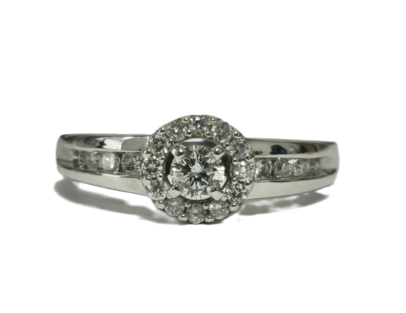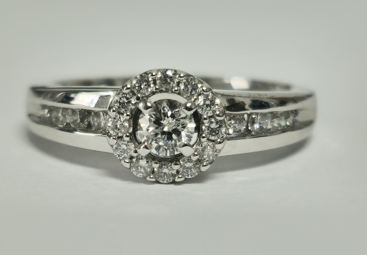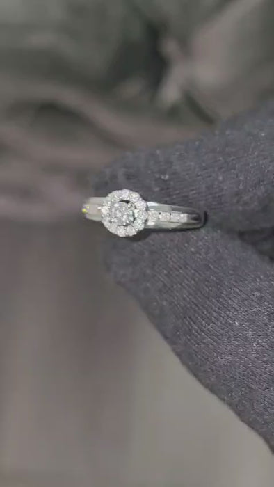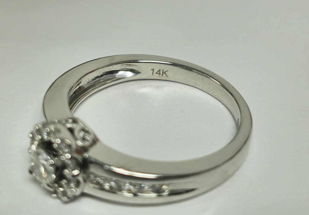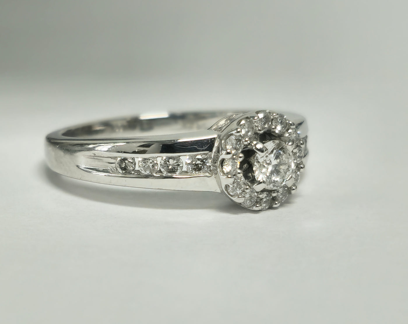 Beautiful ladies diamond engagement ring. Excellent blend of modern and vintage finish. Metal: 14K white gold. Total Carat Weight of Diamonds:...