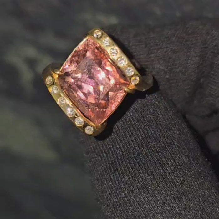 Perfect ladies gemstone and diamond ring. Great craftsmanship on this ring.  14k yellow gold (tested). 8.00 carat kunzite, 100% natural...