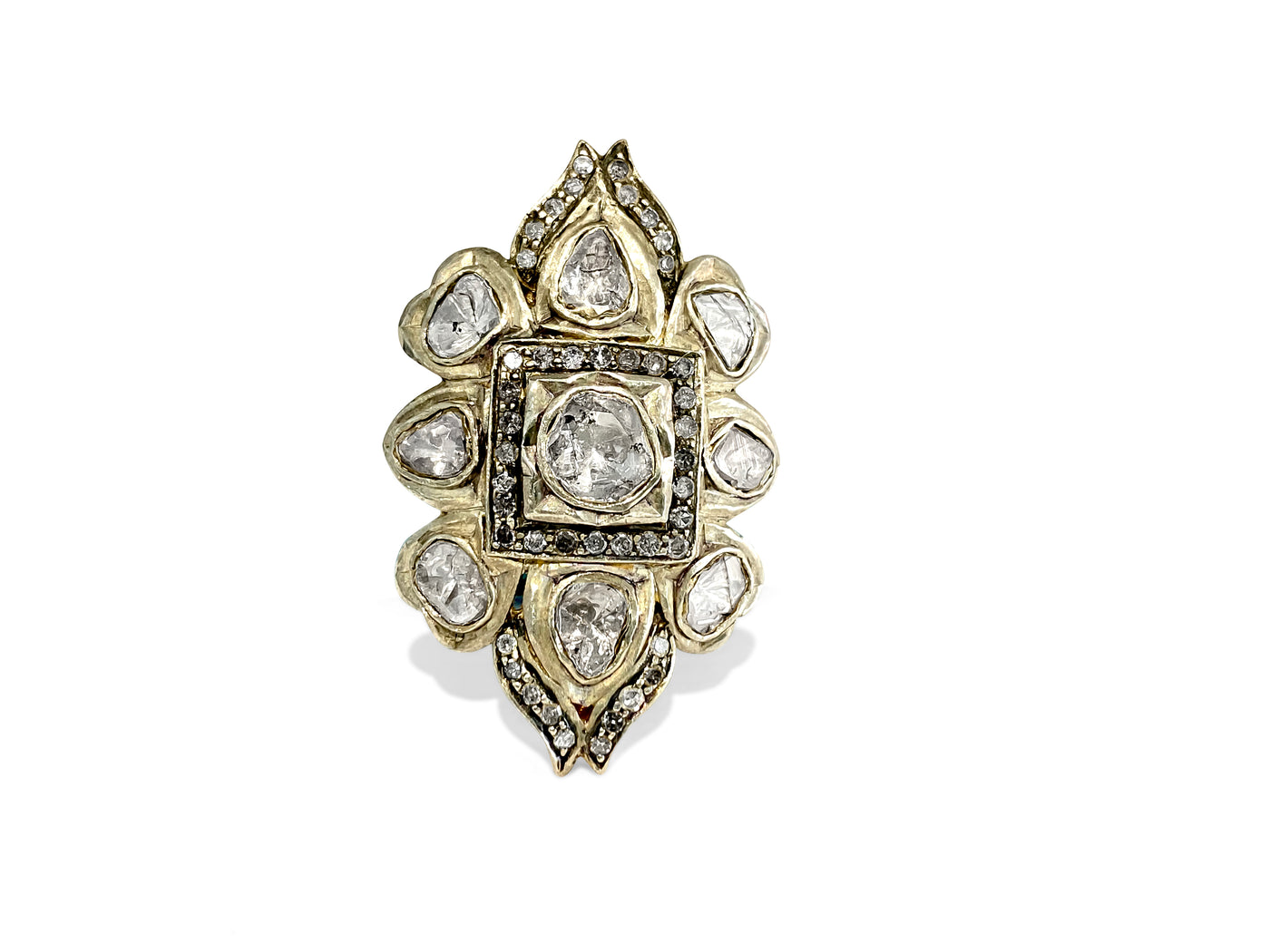 Super antique ring. Truly one of a kind ring. Natural Rose Cut Diamond Pave Ring Sterling Silver 14 K Yellow...