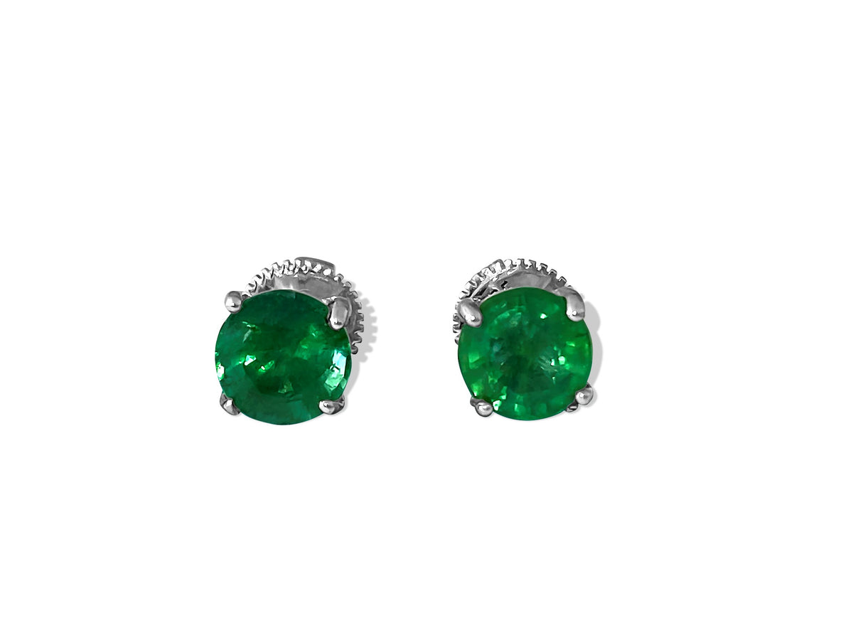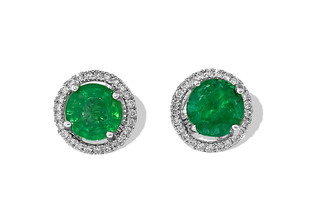 14k Gold 2.50 Carat Emerald Diamond Stud Earrings