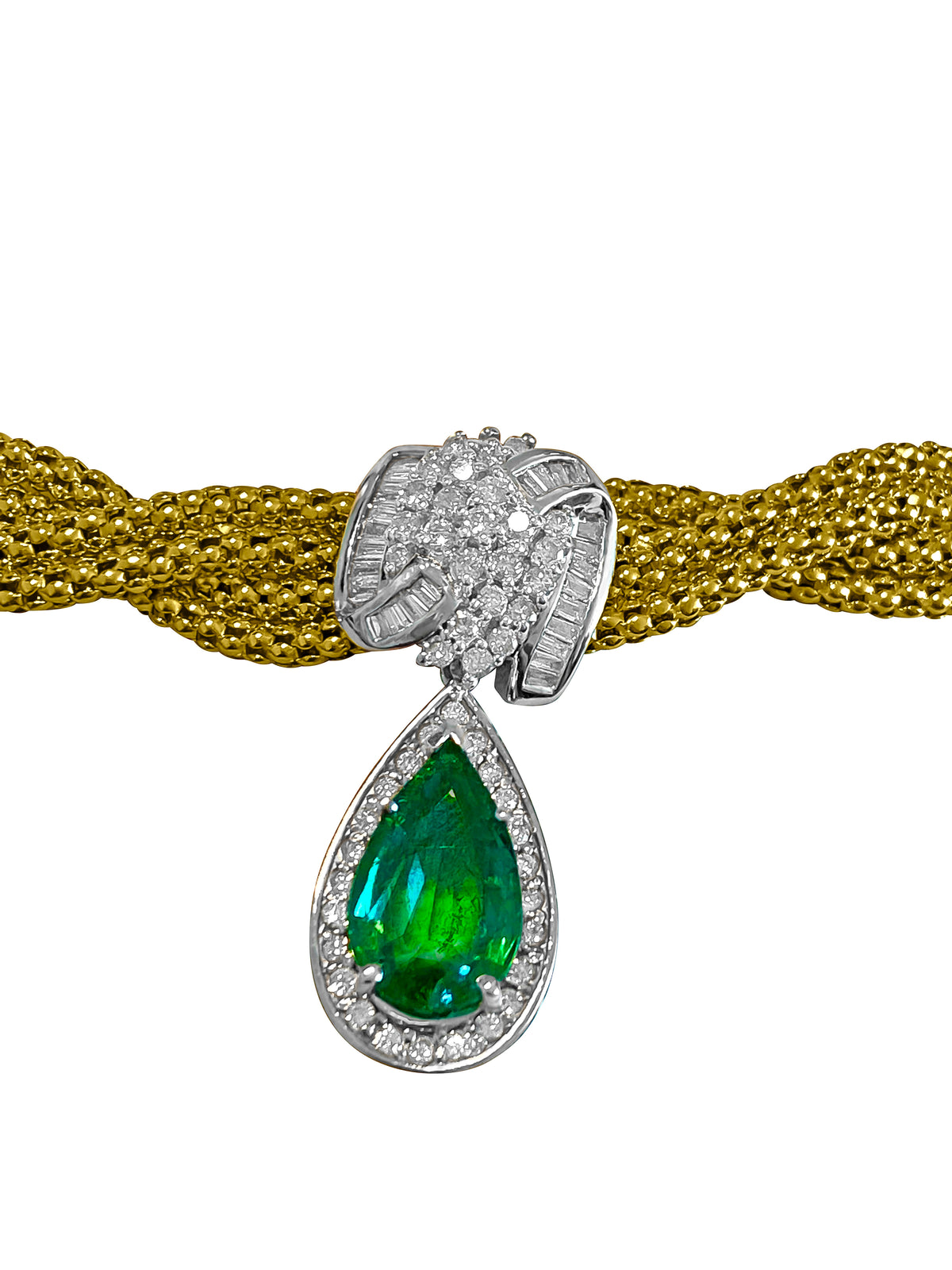 Metal: 14K Yellow Gold. 4.50 Carat Pear Shape Emerald. 100% natural earth mined Colombian Emerald, intense green color. 3.00 Carat...