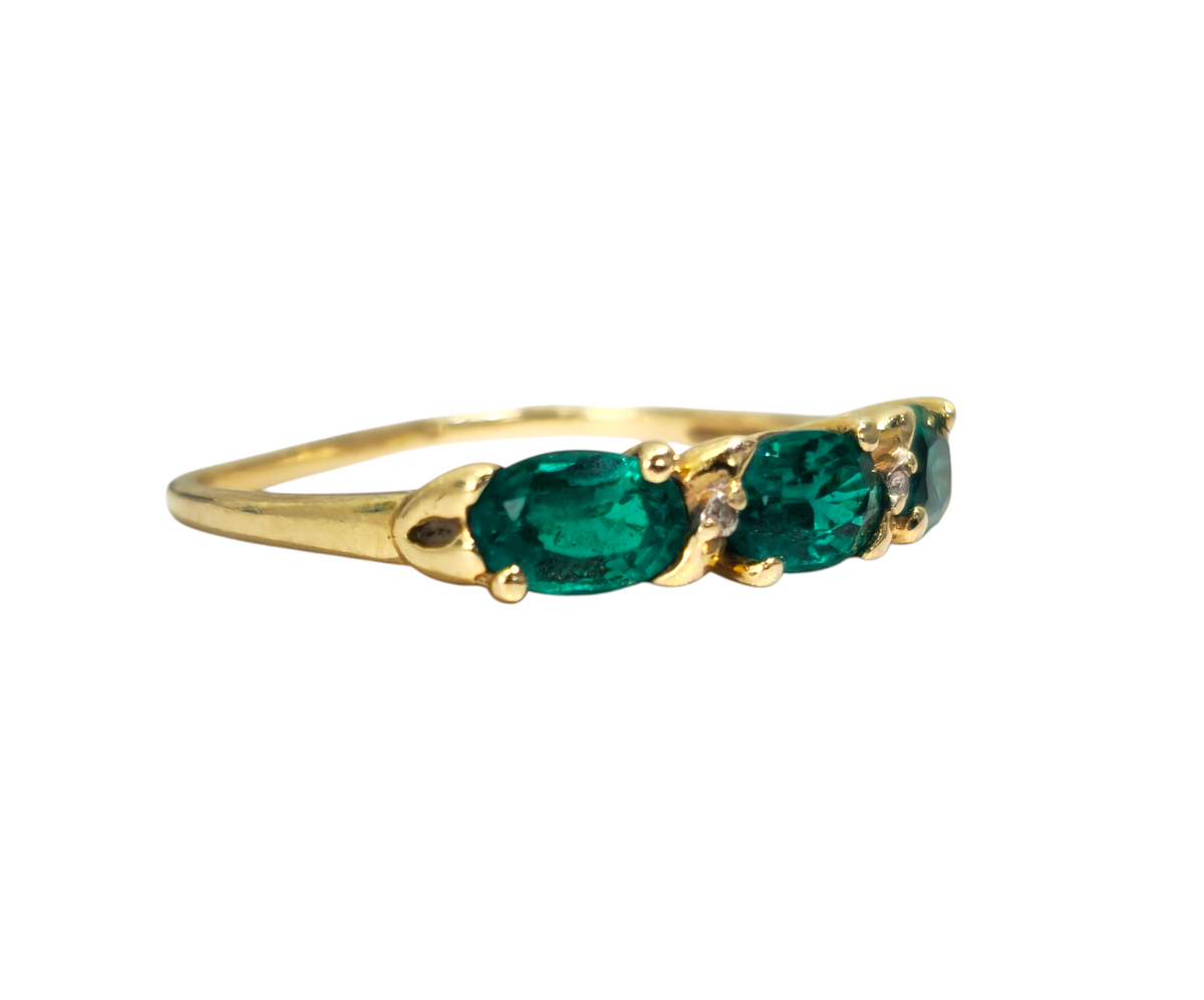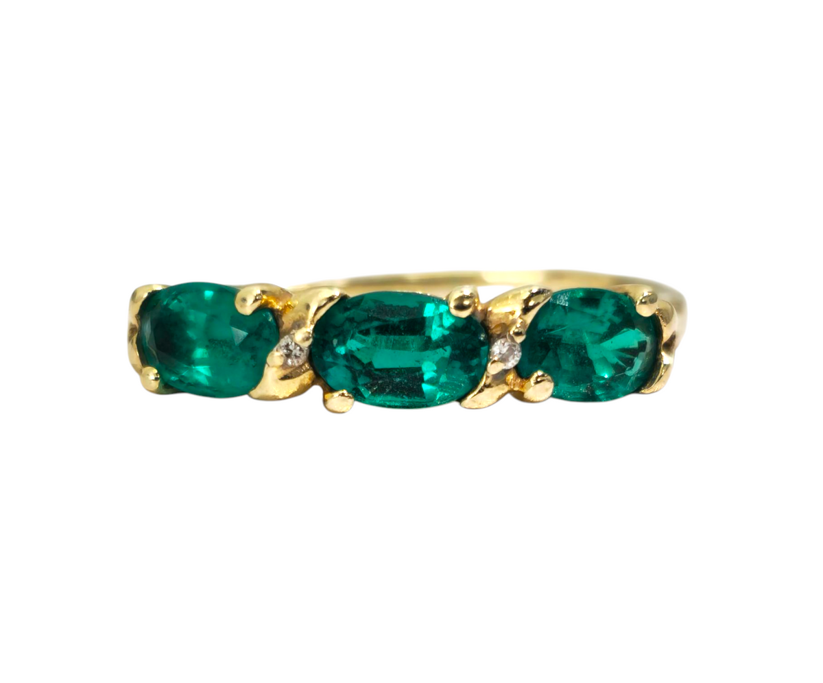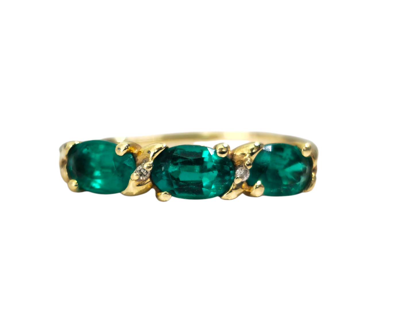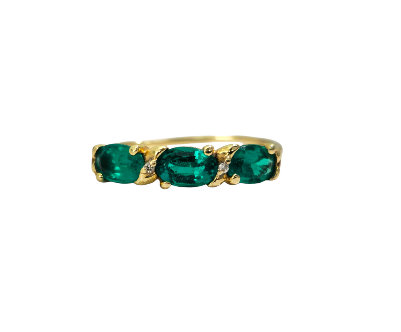Metal: 14k yellow gold. 1.50ct total oval emerald. 2 loose diamonds, SI1 clarity, F color. 100% natural earth mined. Total...