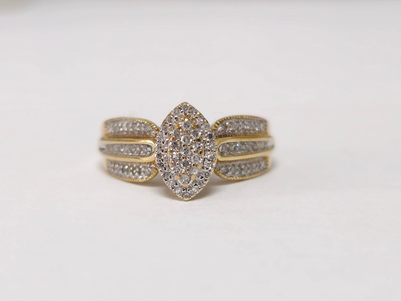 Beautiful vintage marquise motif diamond engagement ring for her. 100% natural earth mined diamonds. Metal: 14k yellow gold. Diamond: 1.20 carat...