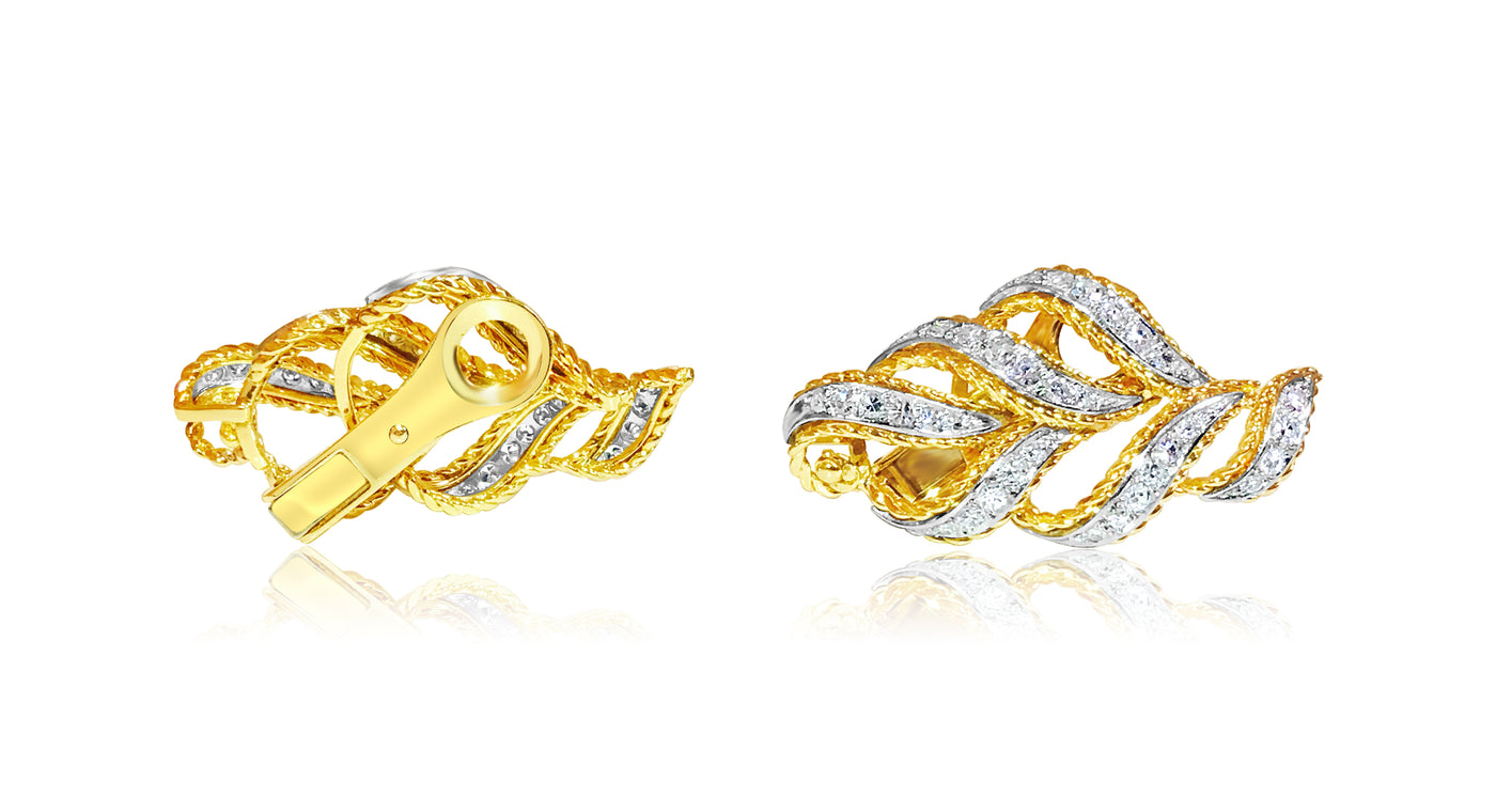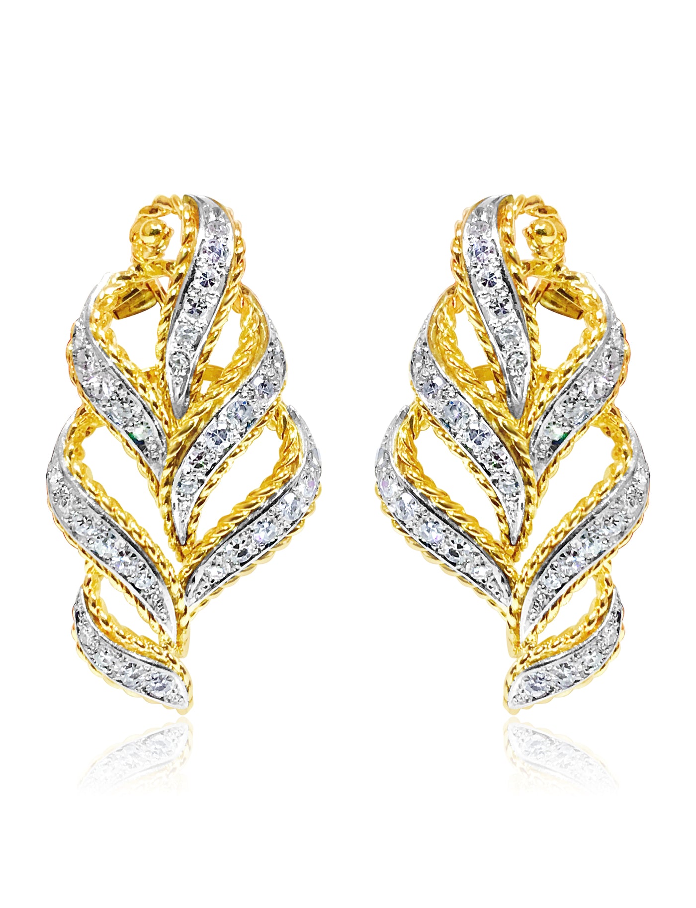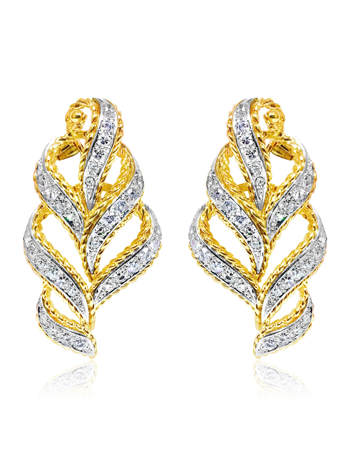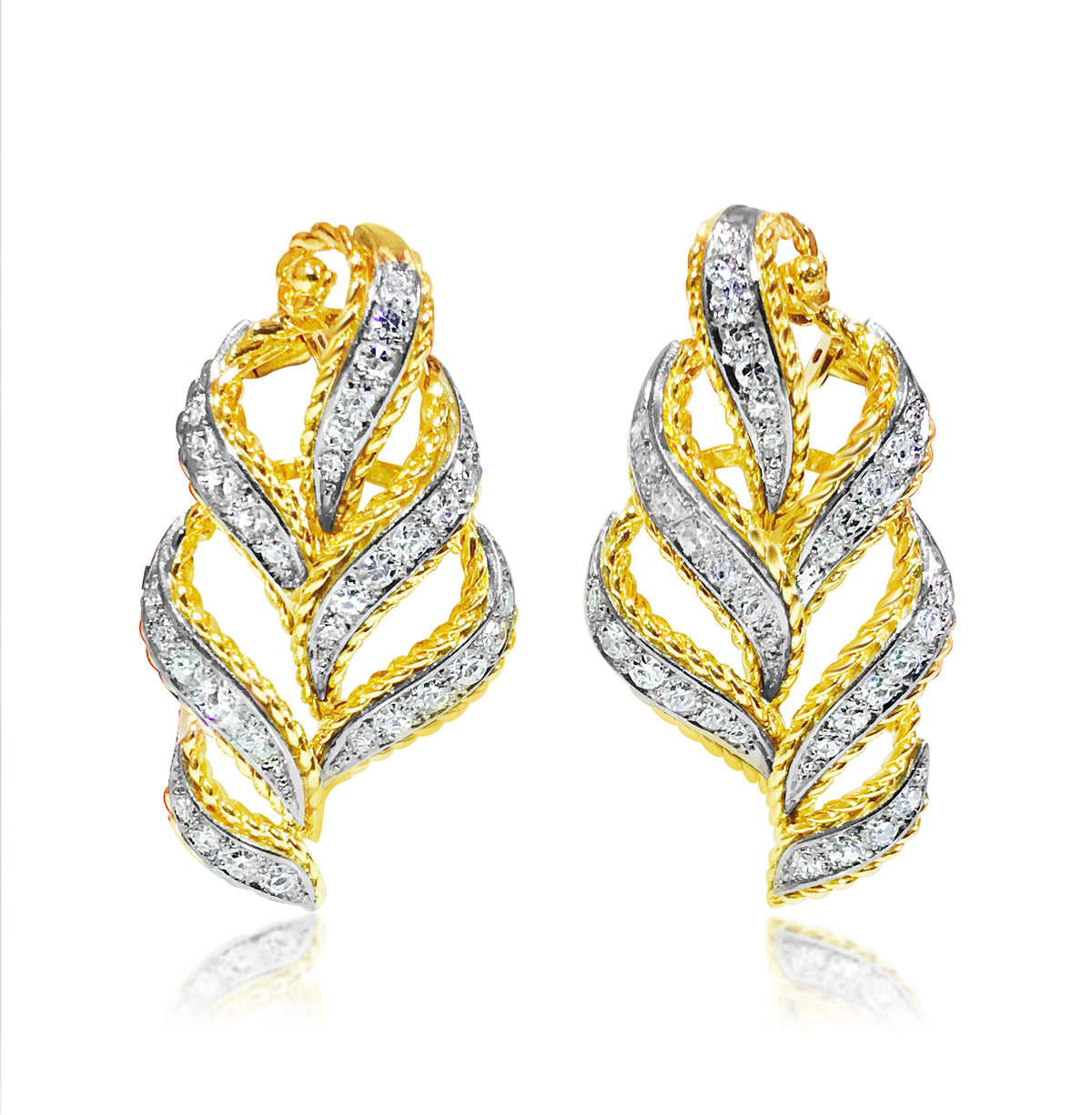 Perfect ladies earrings. Superb luster in diamonds. Nice shine.  14K yellow gold. TCW of diamonds: 2.00 carats. Round Cut. VS...