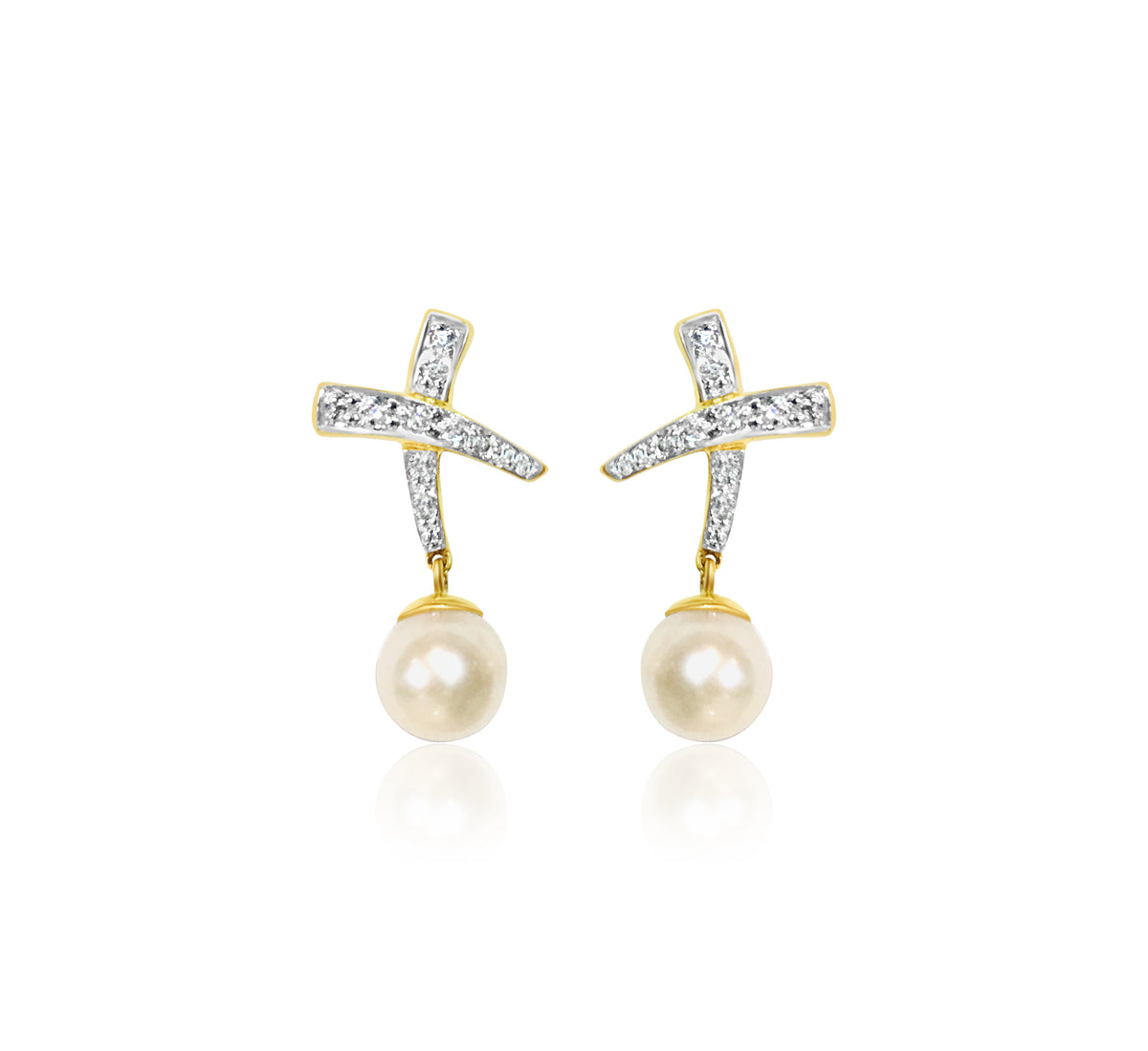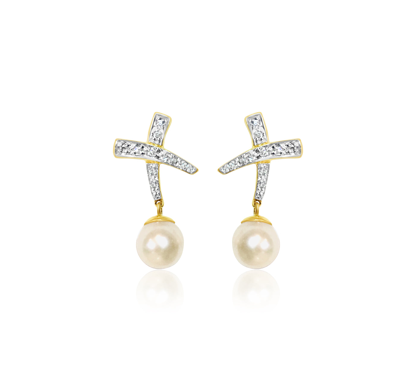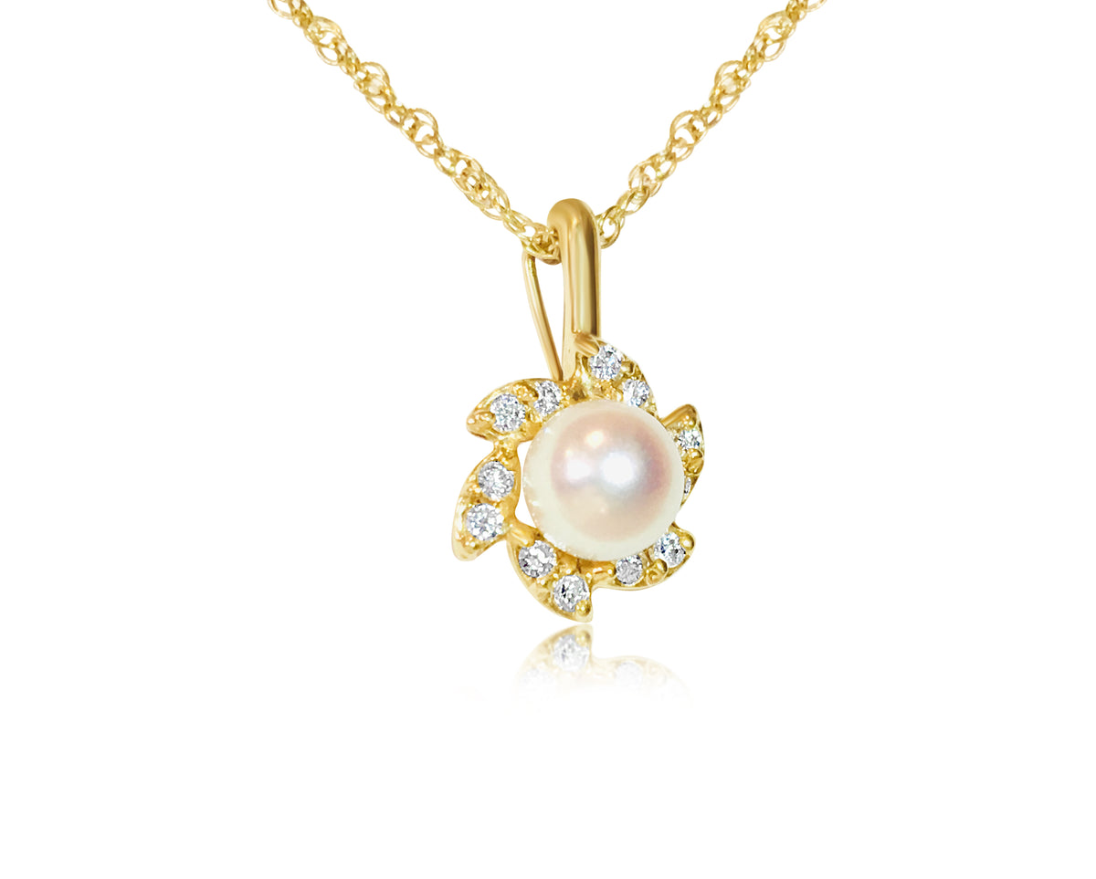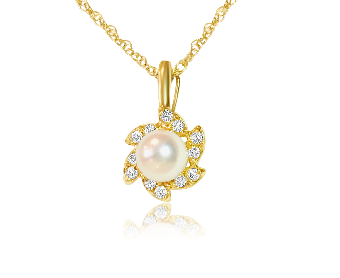 18K, 0.65 CT diamond & pearl; earrings & pendant set