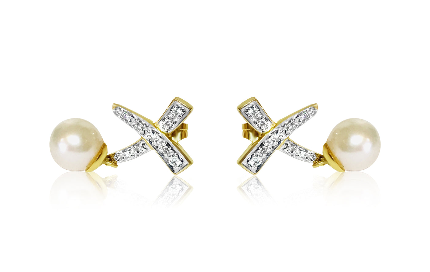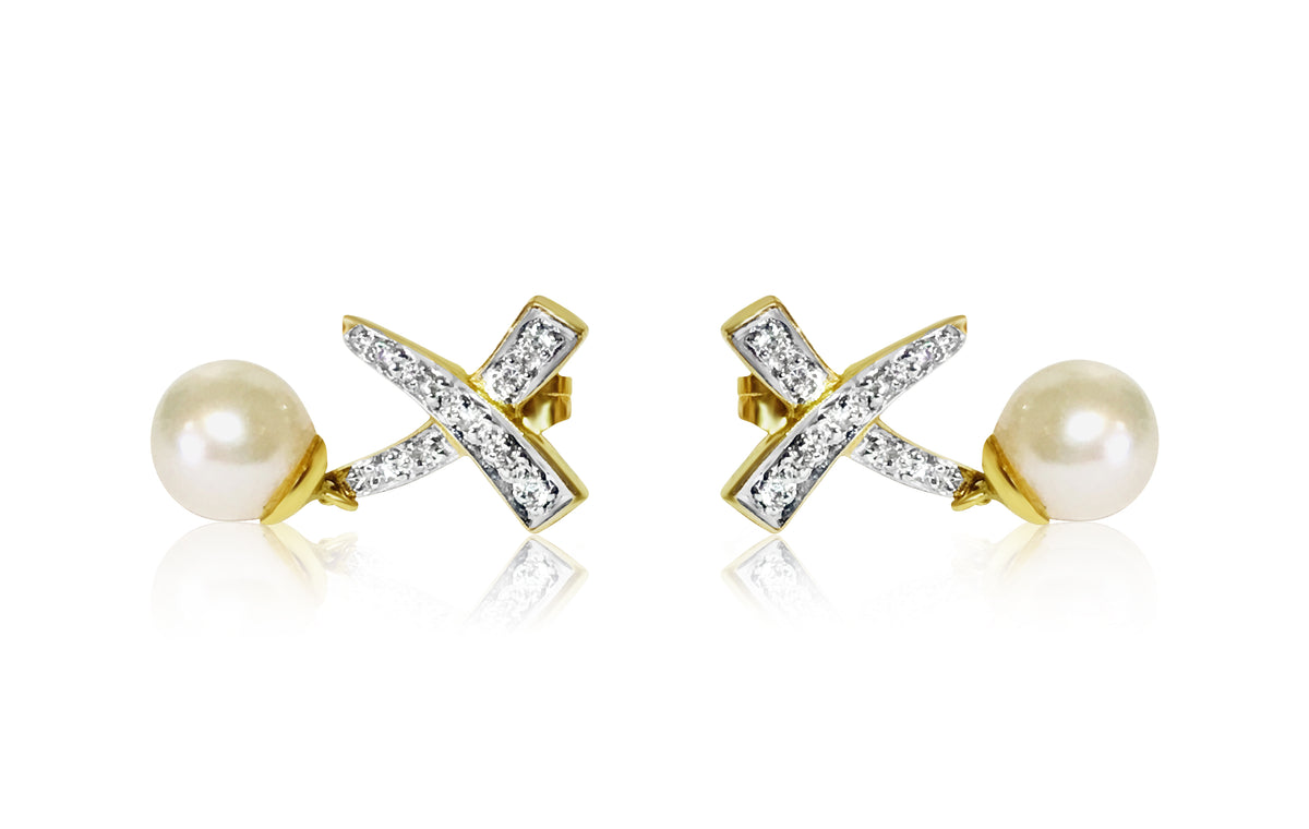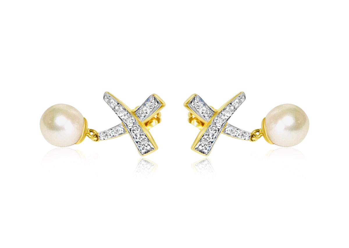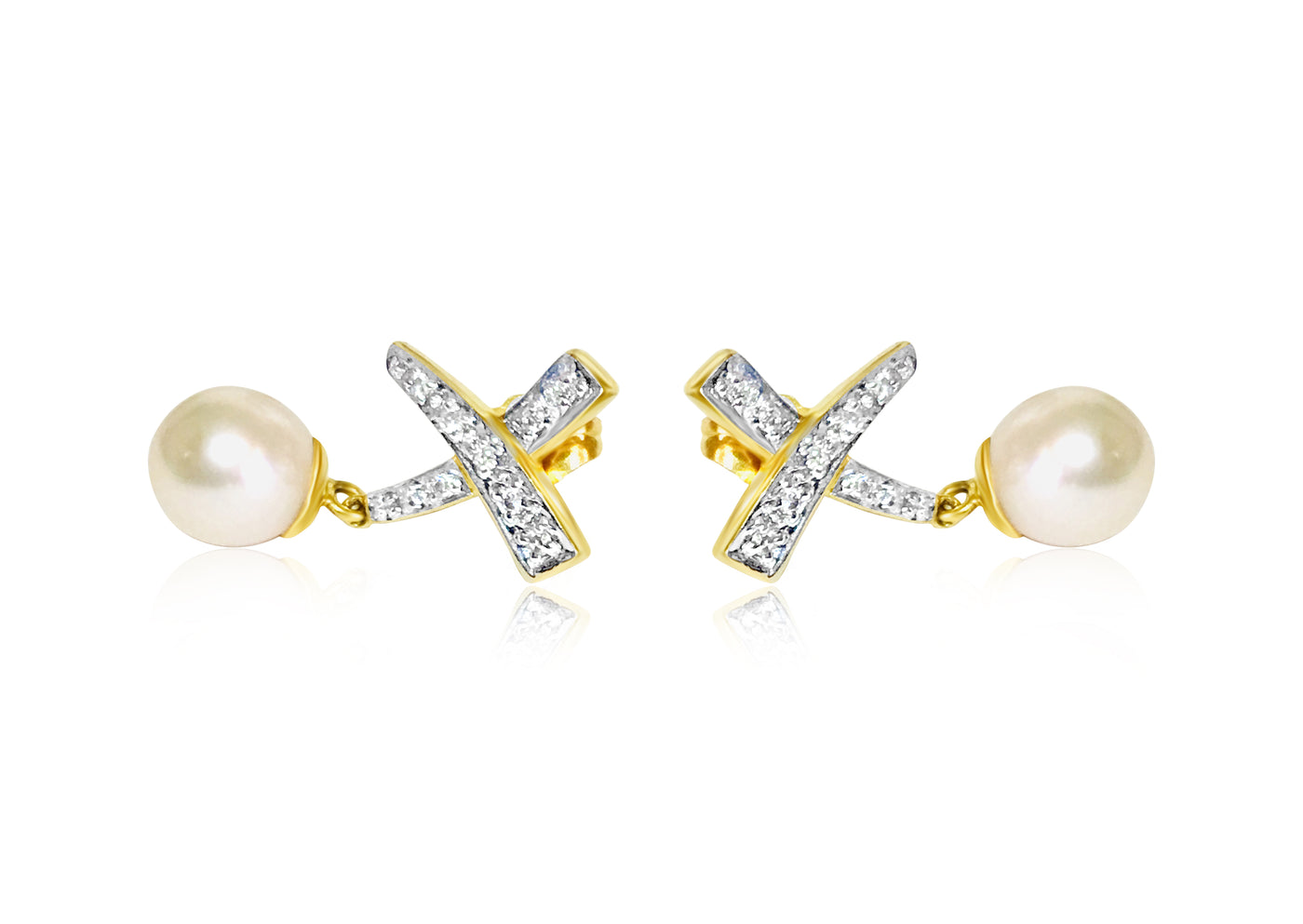 18K, 0.65 CT diamond & pearl; earrings & pendant set