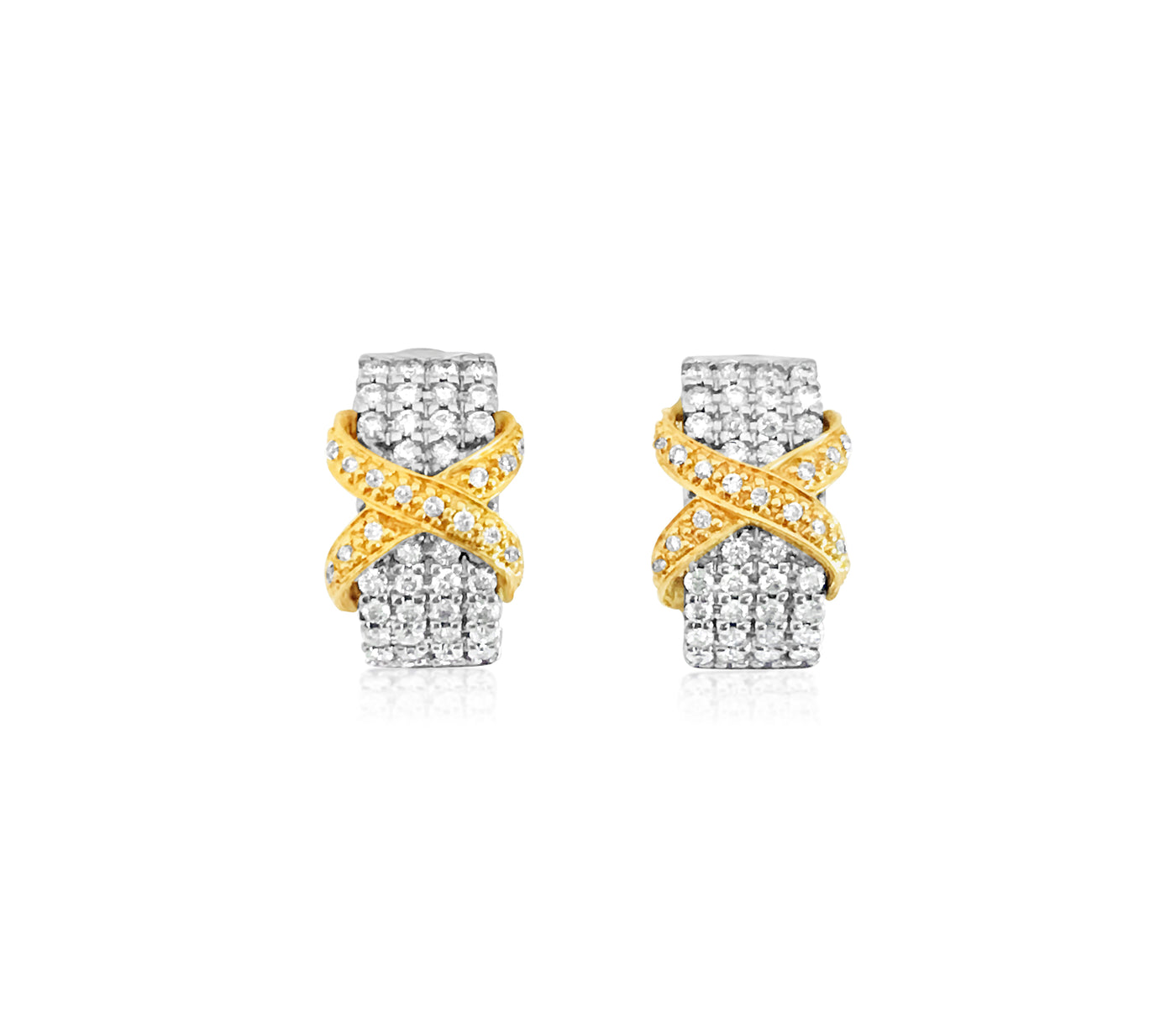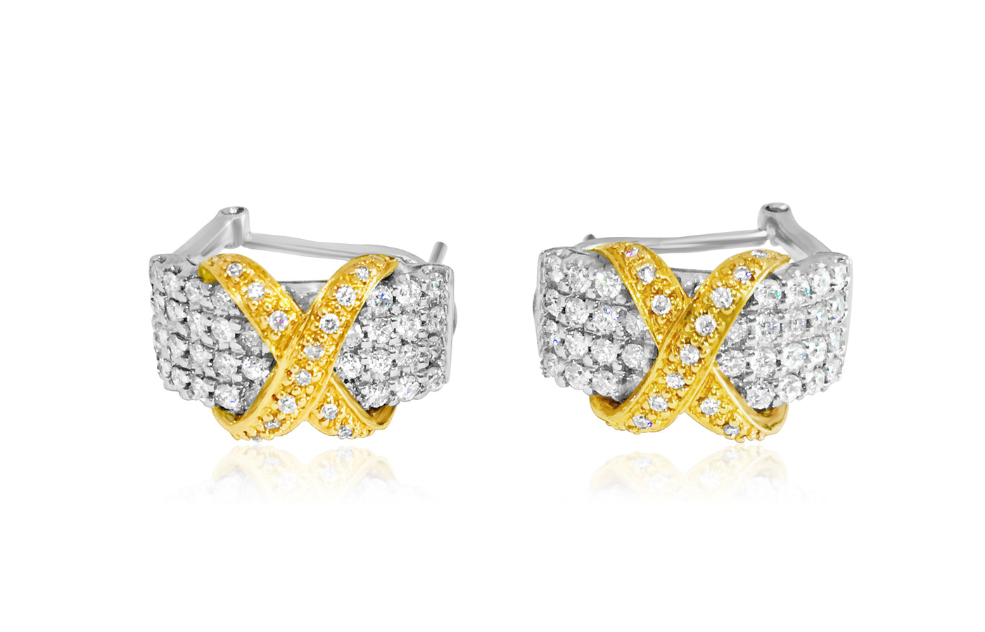 18K Gold Two Tone 2.00 Carat Diamond Earrings
