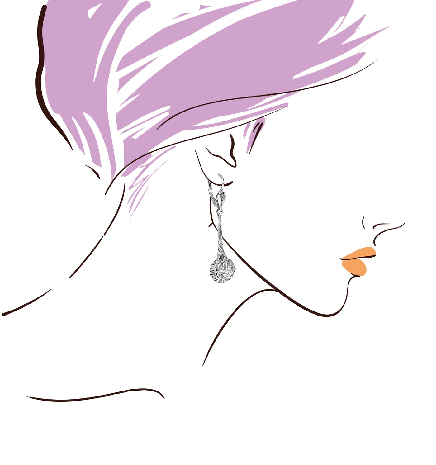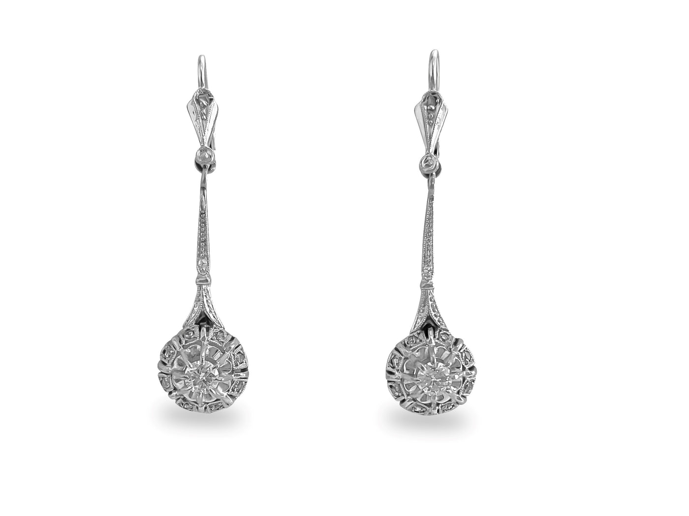 Vintage, 18k White Gold & Diamond Dangle Earrings