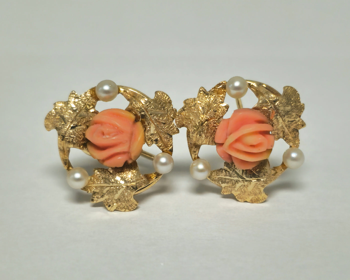 Beautiful womens fine jewelry. Excellent high end victorian style gold earrings. Metal 14k yellow gold. Gemstones: coral and pearl. 3.20...