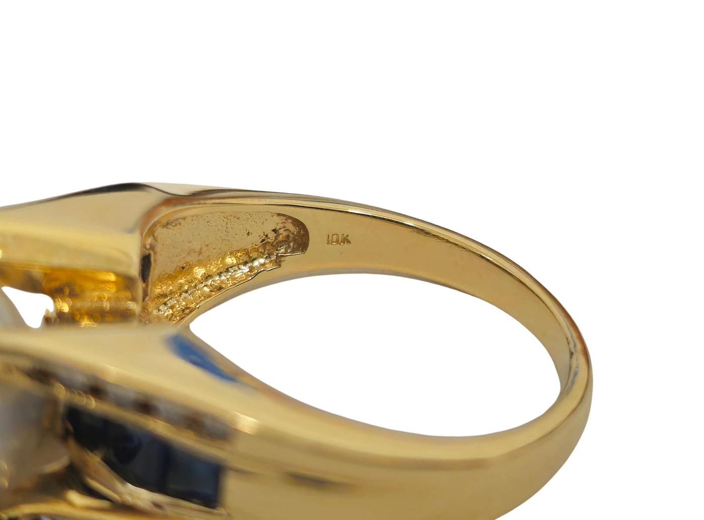 Elegant 10k gold ring featuring a 3ct pearl, accented by diamonds and a stunning blue sapphire. Pearl ring. Metal: 10k...