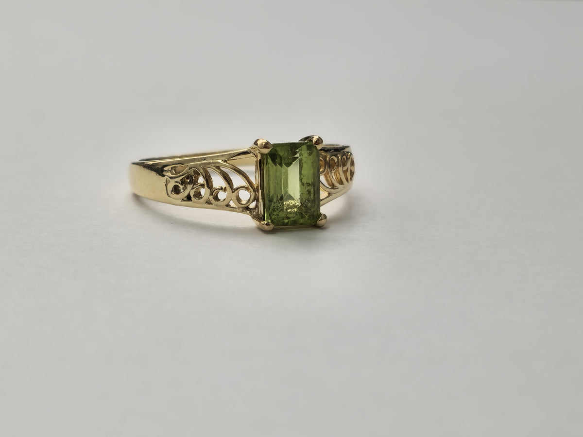 10k Gold peridot ring. Super luster and shine. 10k gold. 2.1 gram 1.3ct green peridot ring size US 7