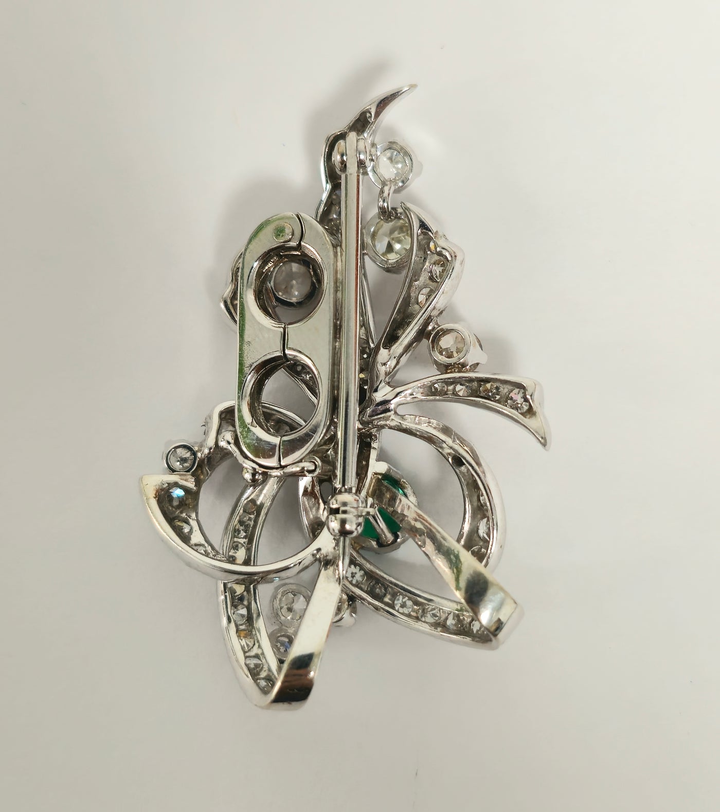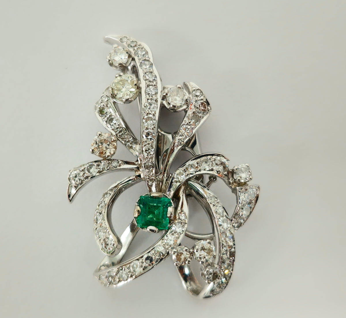 7.50 Carat VVS Diamond and Colombian Emerald Pin