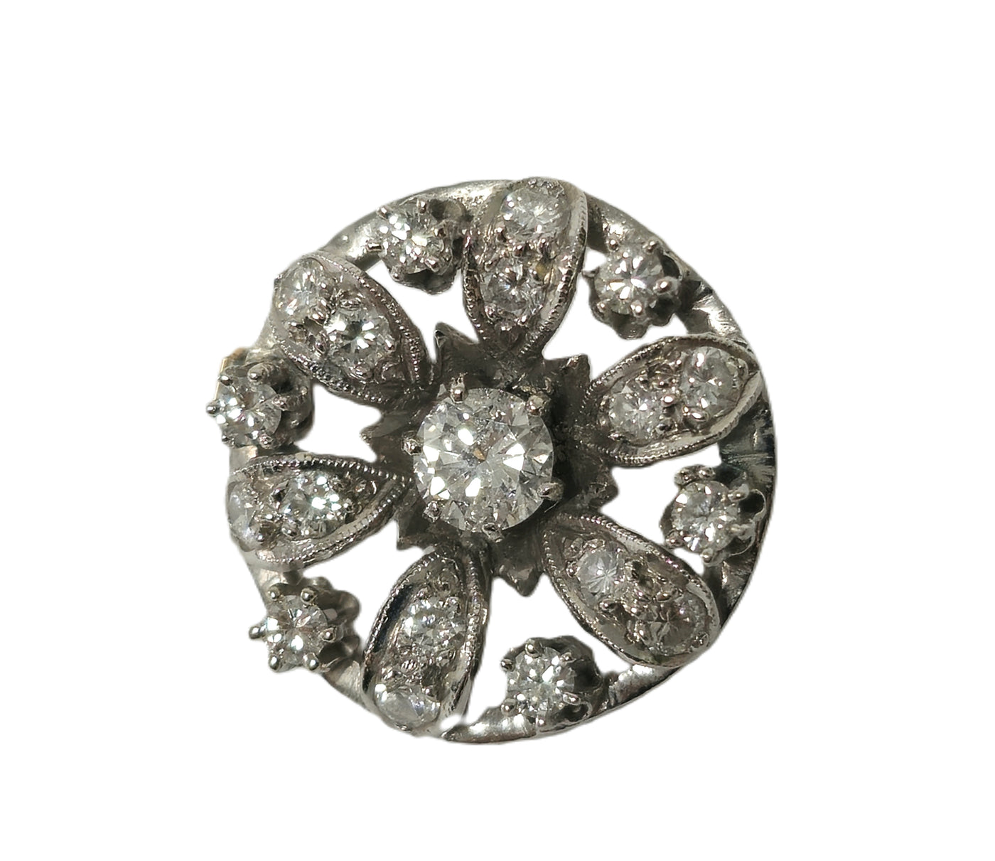 Gorgeous womens vintage platinum pin. Art deco style jewelry. Metal: Platinum. 1.25ct diamonds side. Center: 0.50cts. Color: G. Clarity: VS-SI. ...