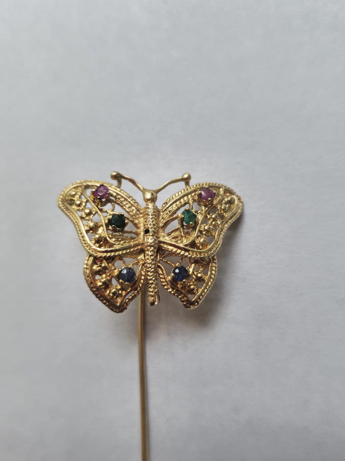 Butterlfy Motif Multi Gemstone Pin in 18k Yellow gold