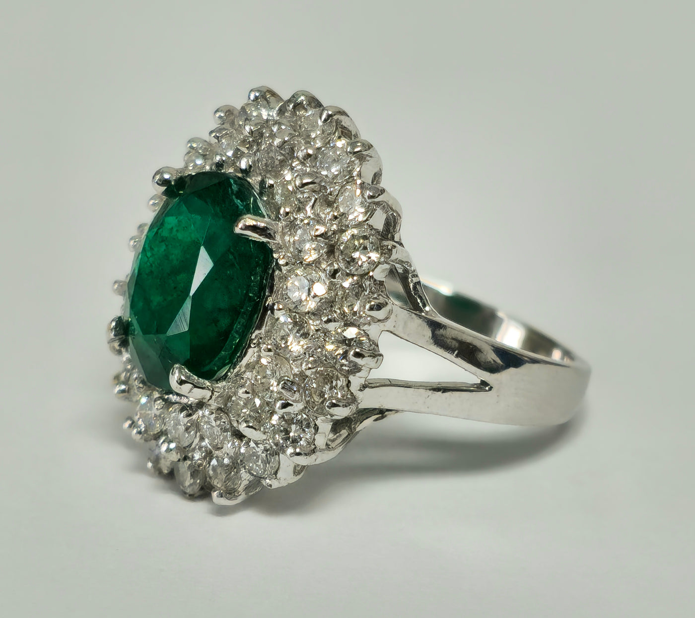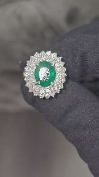 Perfect ladies emerald and diamond cocktail ring. Deep color and saturation in  emerald. Excellent luster and shine in diamonds. Metal: 14k white...