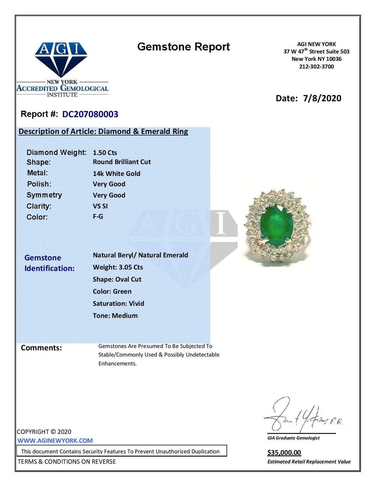 GIA 14K White Gold Emerald Diamond Cocktail Ring