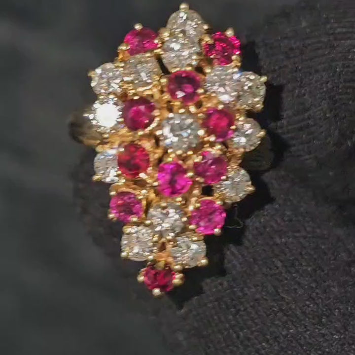 Extremely gorgeous Diamond and Ruby Cocktail Ring. All stones are 100% natural and earth mined. 14K Yellow Gold. 1.50 ct...