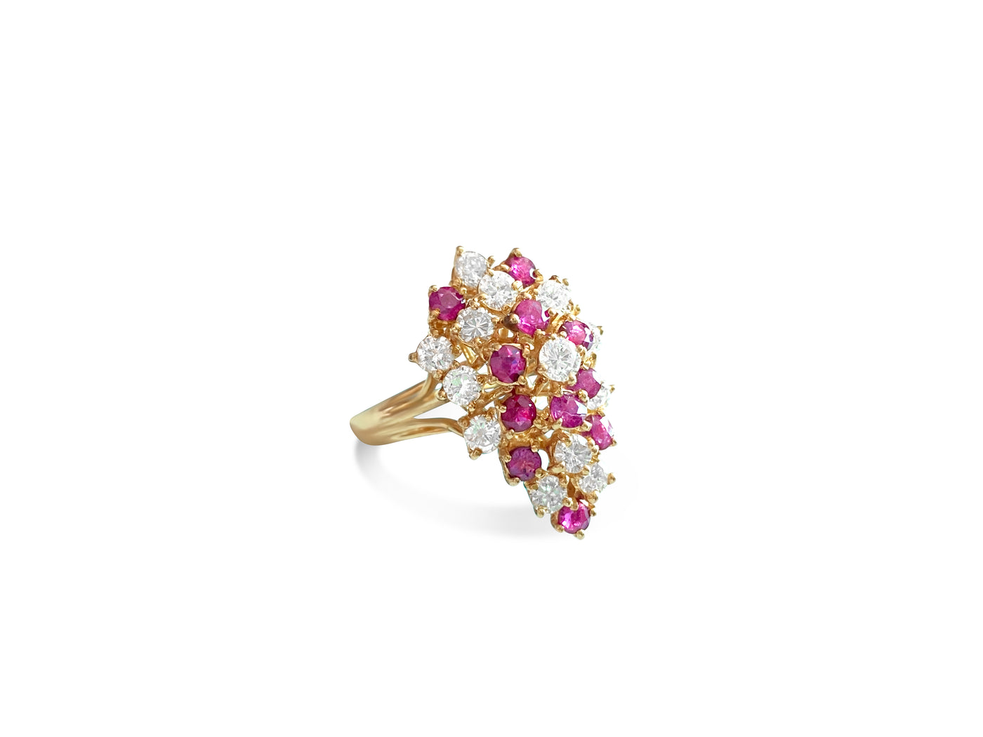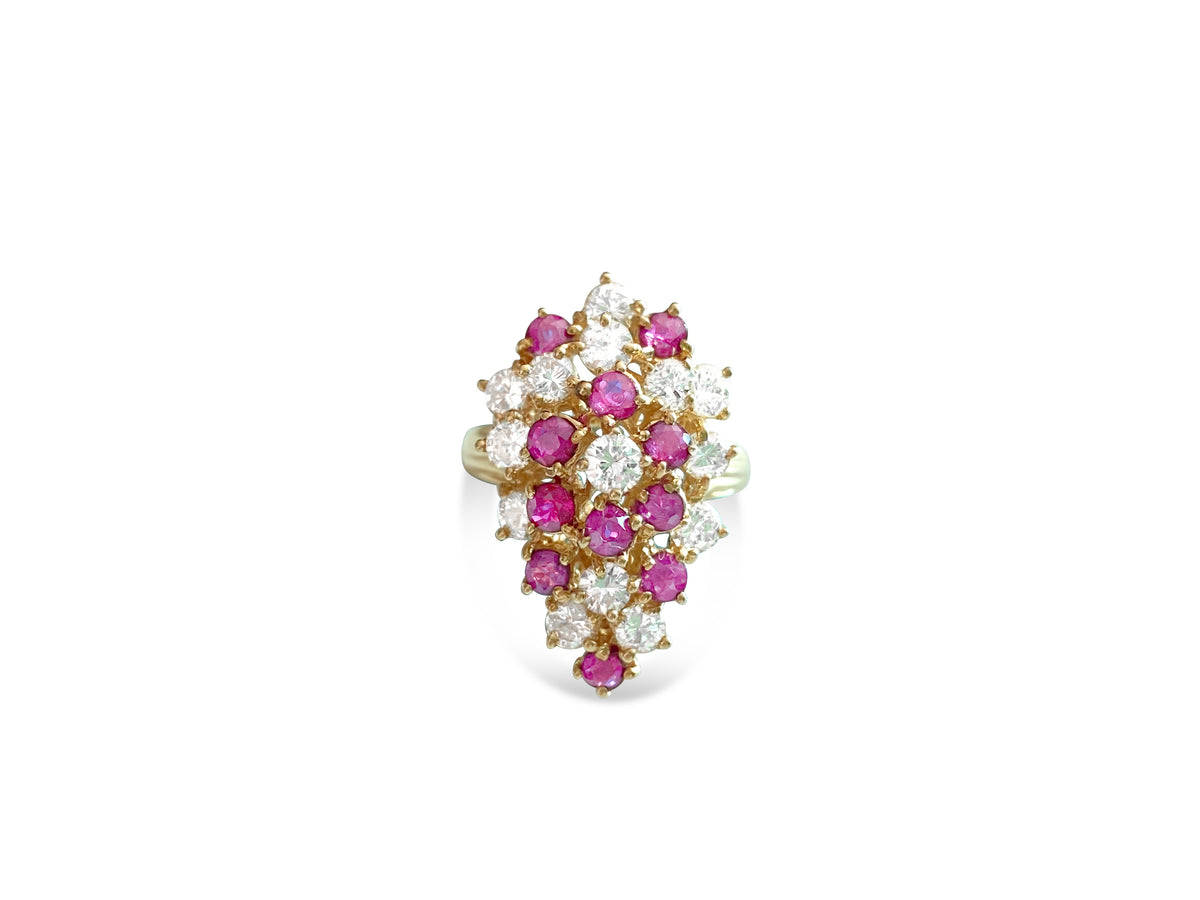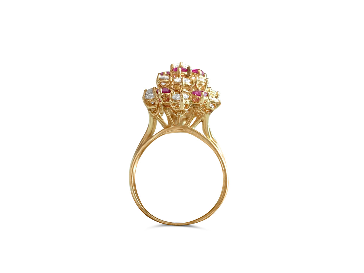 14K Gold, 3.50 Carat Diamond & Ruby Cocktail Ring