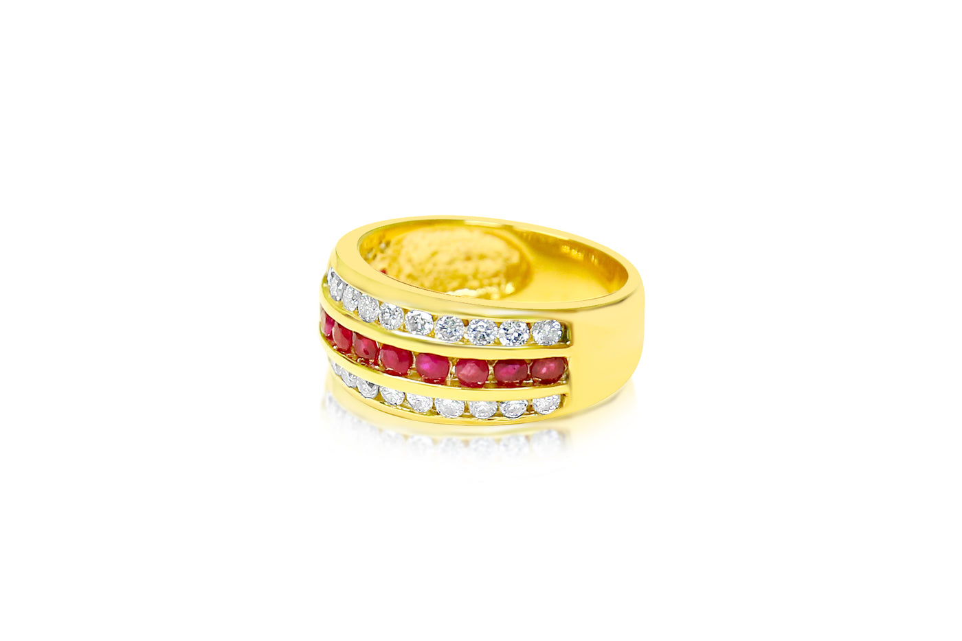 14k Yellow Gold, 2.25ct Diamond and Burma Ruby Ring.