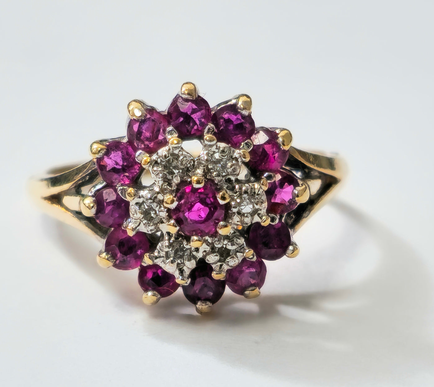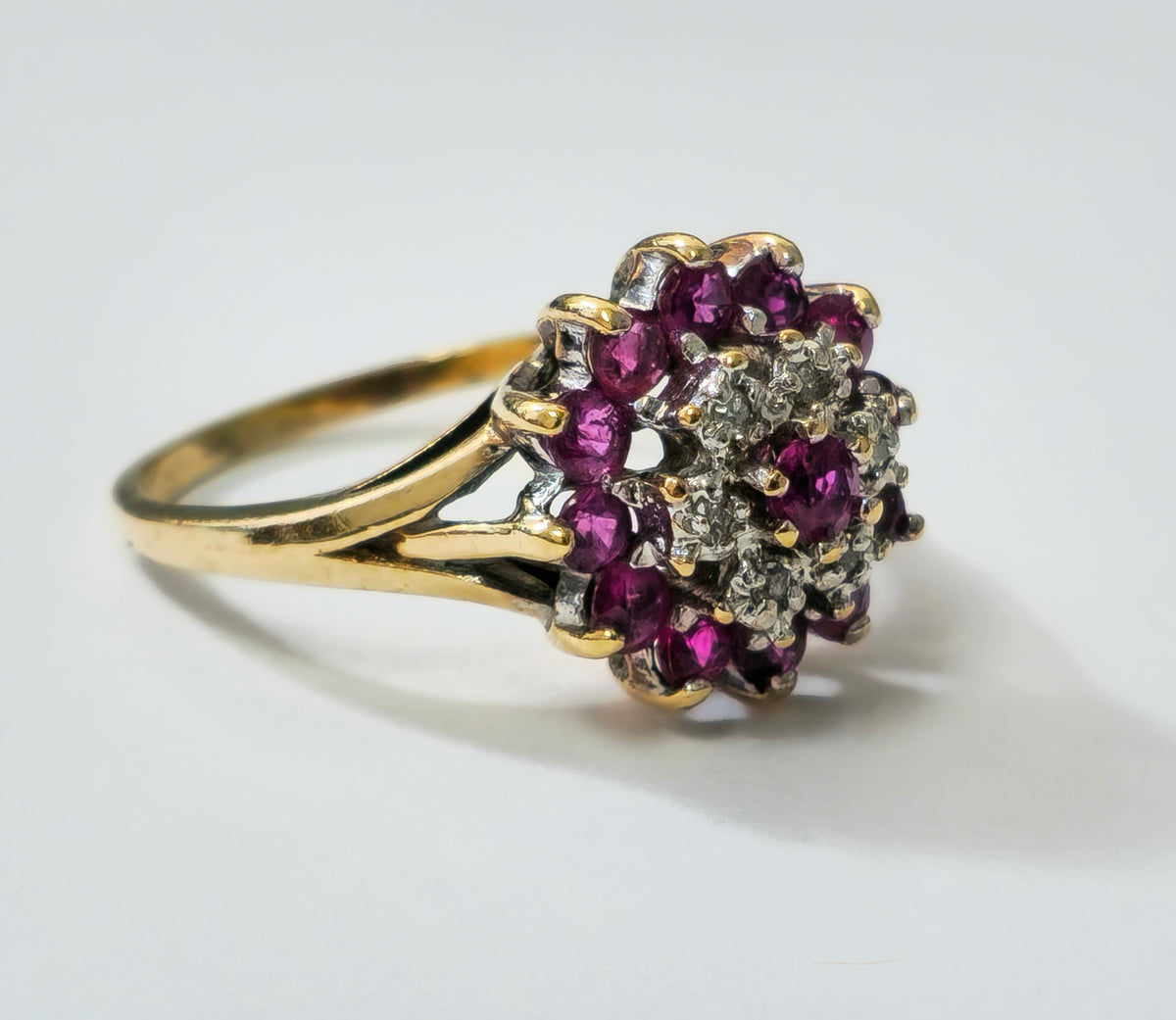 Vintage Natural 1.20 Carat Ruby & Diamond Cocktail Ring in 14k yellow gold
