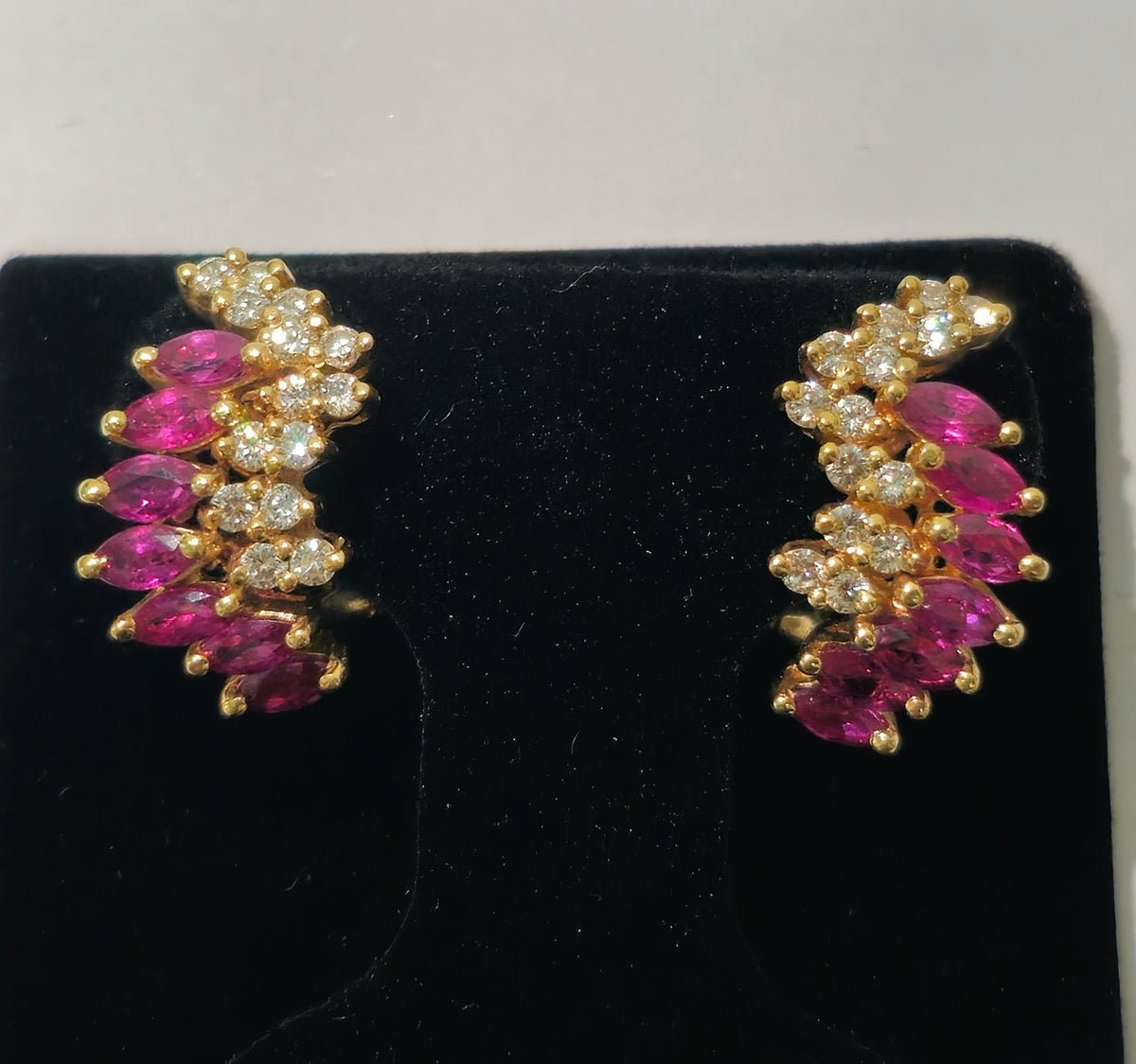 Perfect ladies ruby and diamond earrings. 100% natural earth mined precious gemstones. Excellent luster and finish.  Metal: 14k yellow gold. 1.00...