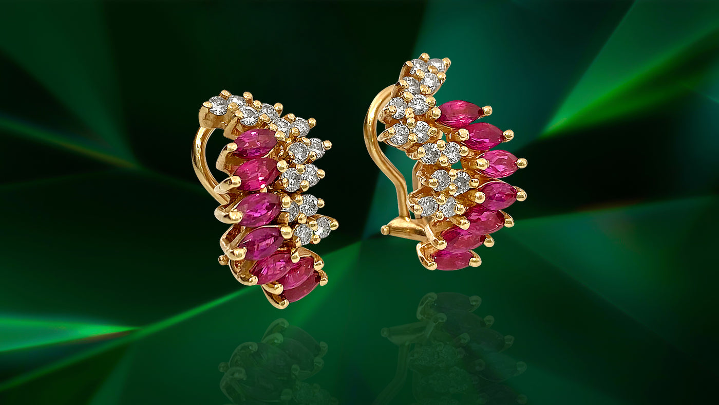 Natural 1.70ct Ruby & Diamond Earrings in 14k Gold