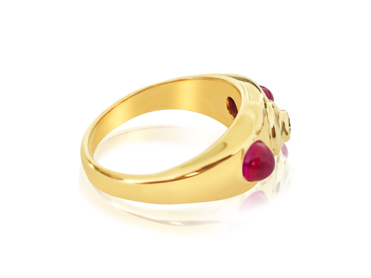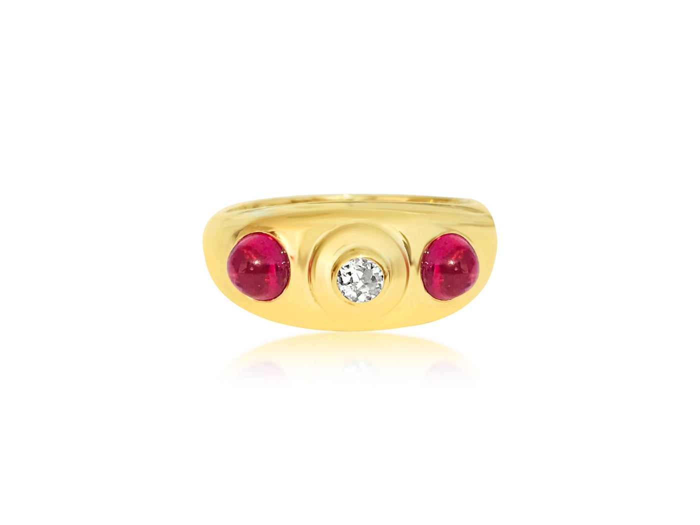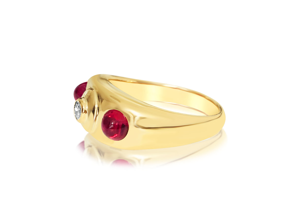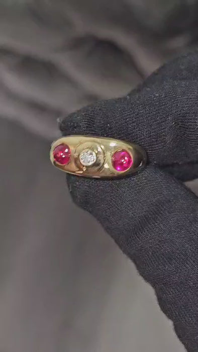 This a classic 3 stone ring. Magnetic and eye catching ruby and diamond ring. Sublime ladies gemstone jewelry. Metal: 14K yellow gold....