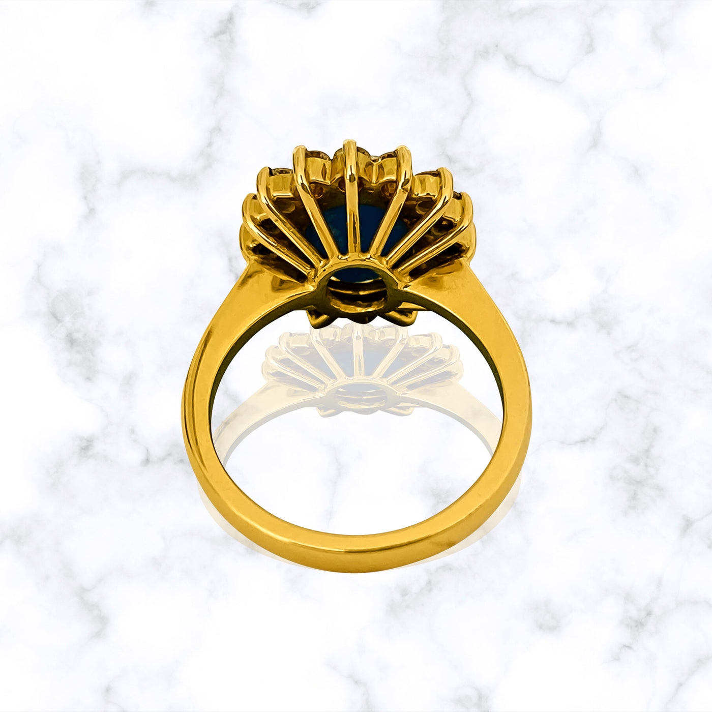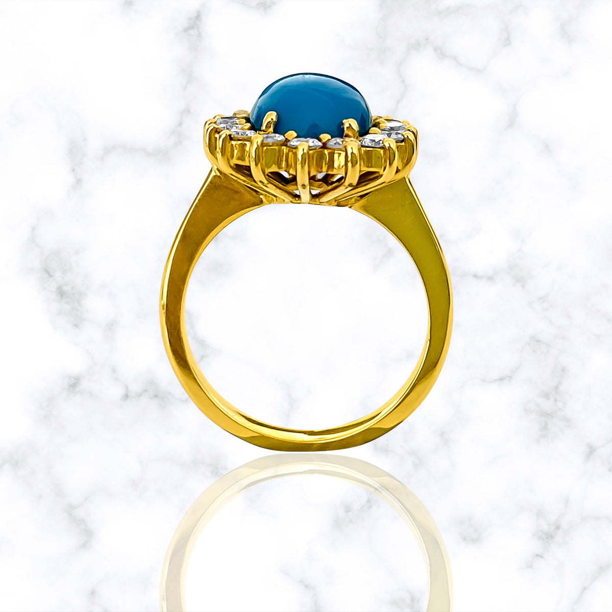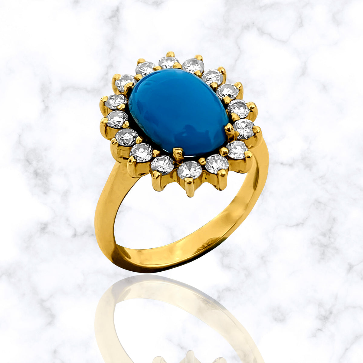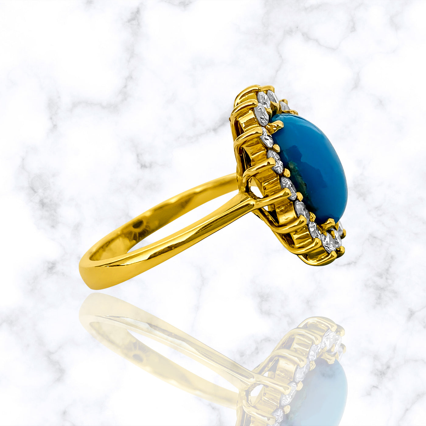 Excellent art deco style cocktail ring for her. Metal: 18K Yellow Gold. Center: 2.00 carat oval shape turquoise. 100% natural...