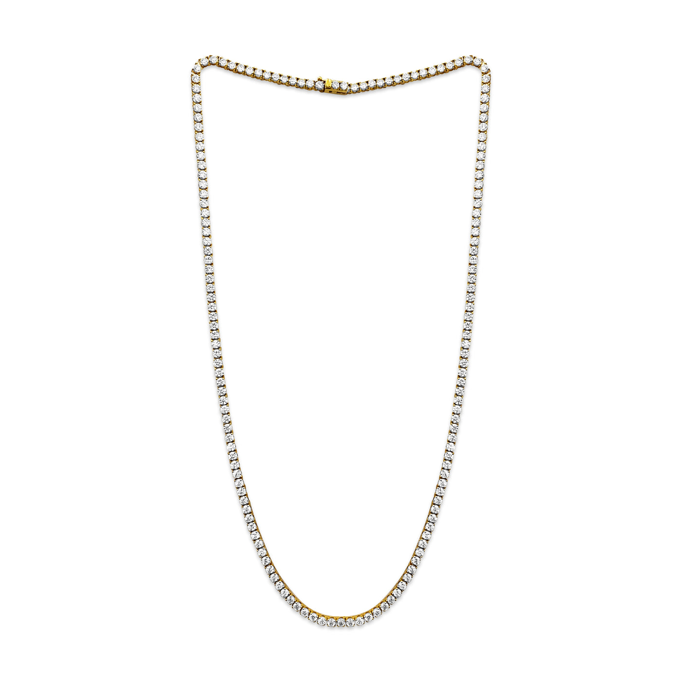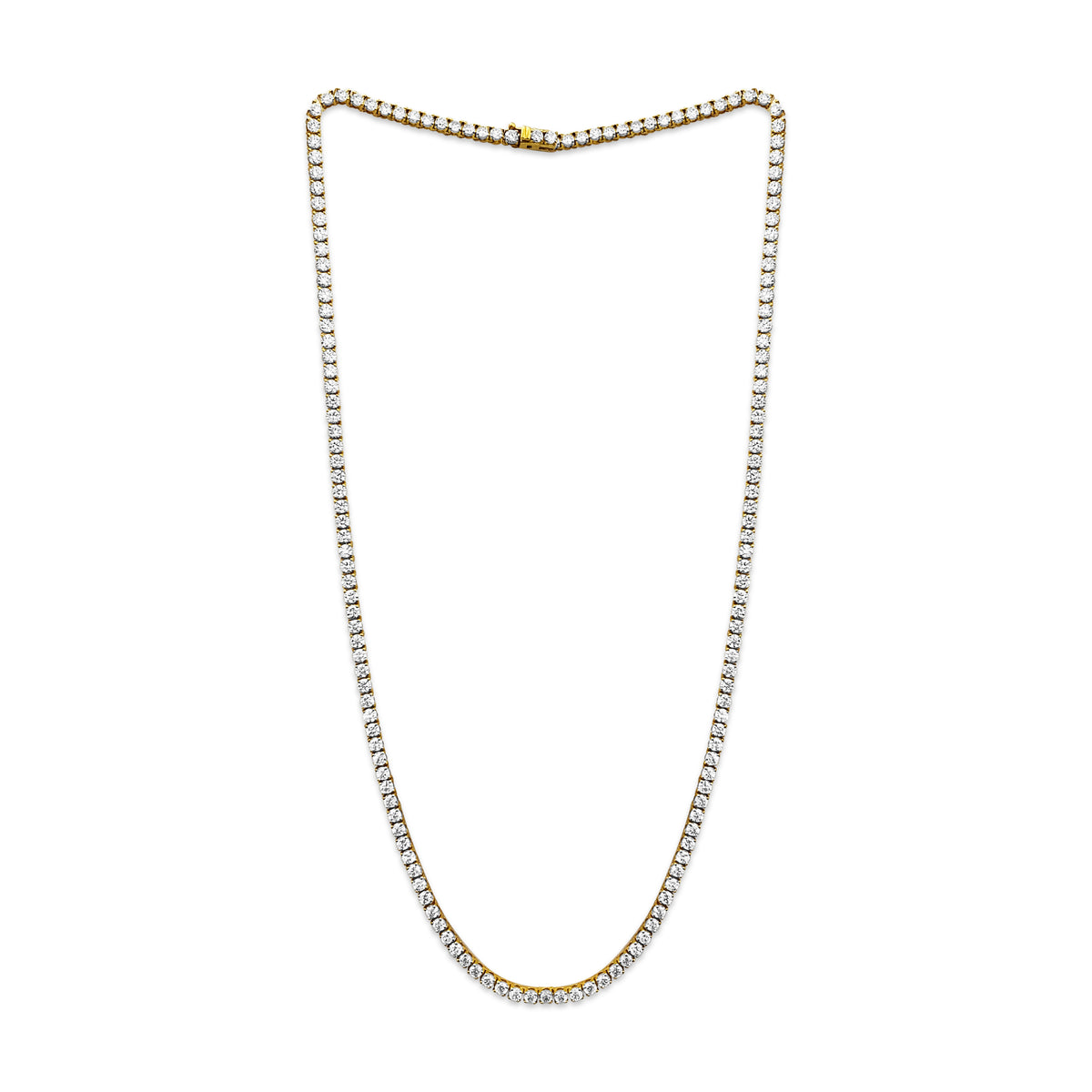 Beautiful unisex diamond tennis necklace. Gorgeous VVS diamonds. High end diamond jewelry. Metal: 14k yellow gold. Diamond carat weight total:...