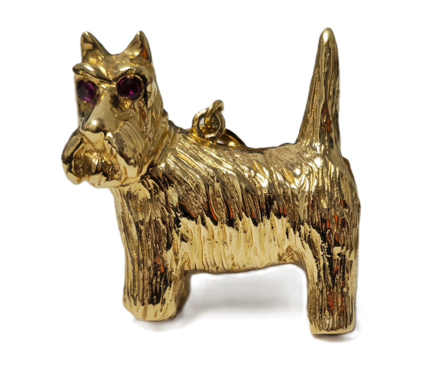 20th century 14k Yellow Gold Dog Motif Ruby Pendant