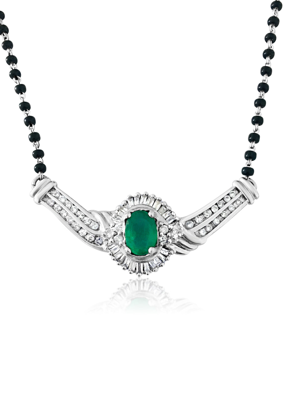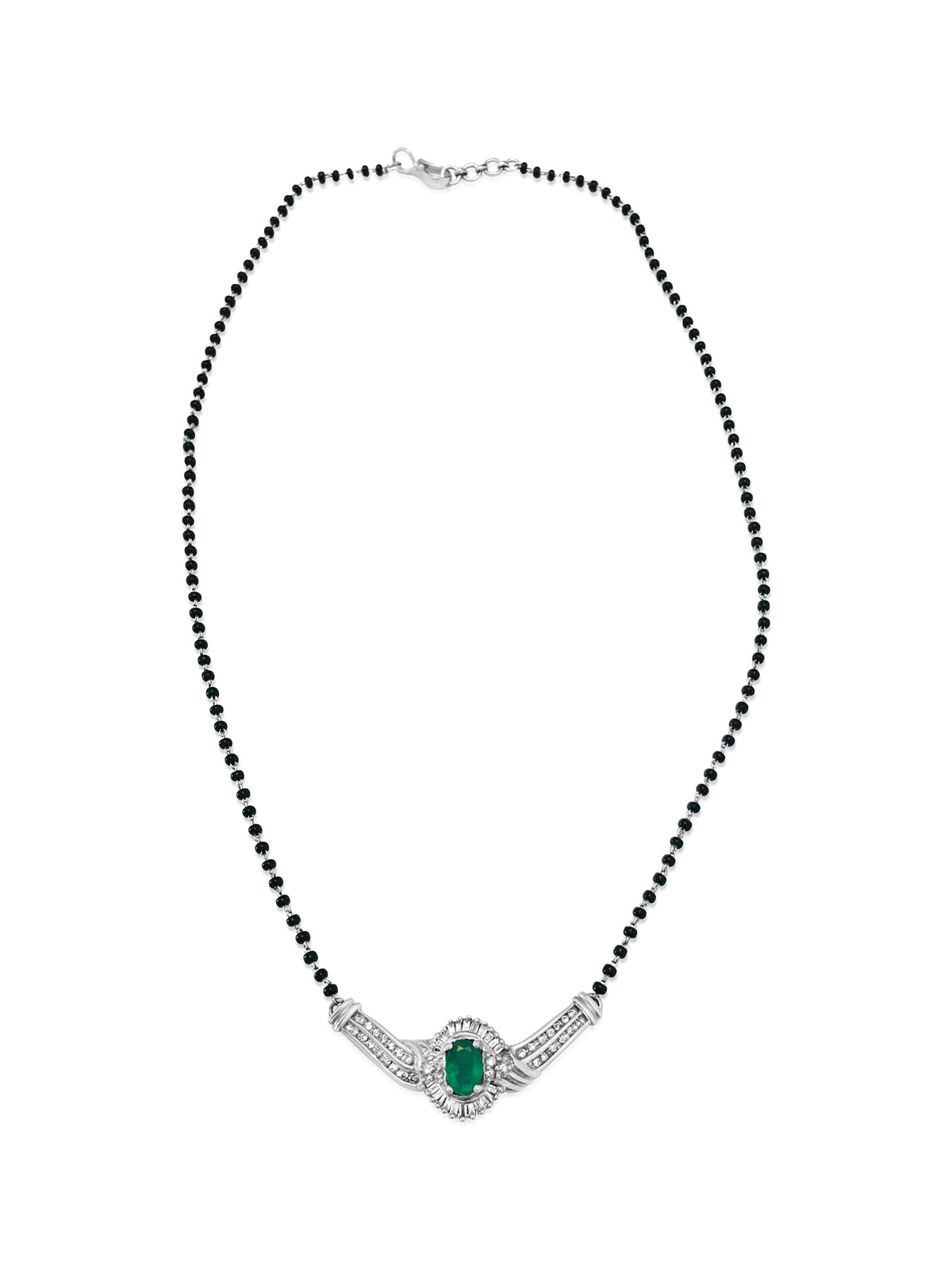 Indian Mangalsutra. 14k, Emerald & Diamond Necklace