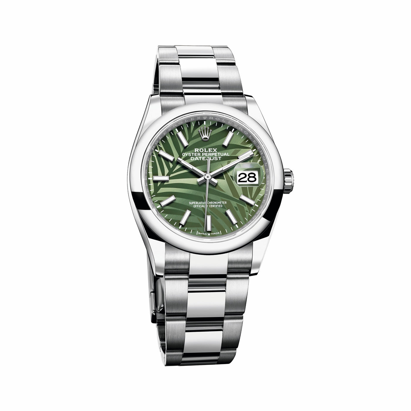 Rolex Datejust 36mm Fluted Bezel 126234 Olive Green Palm Jubilee. Model case of Oystersteel and White Gold. Case size: 36 mm. Monobloc middle case,...