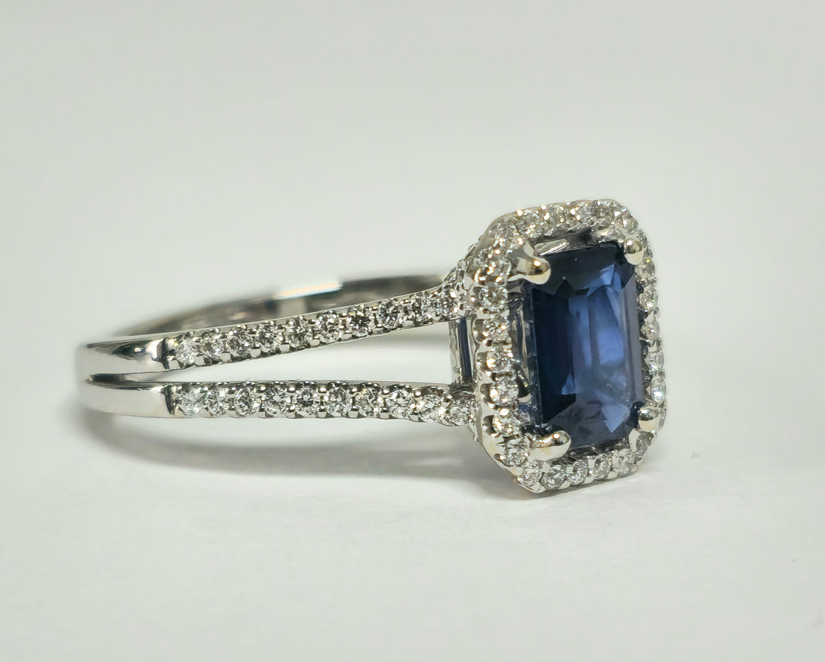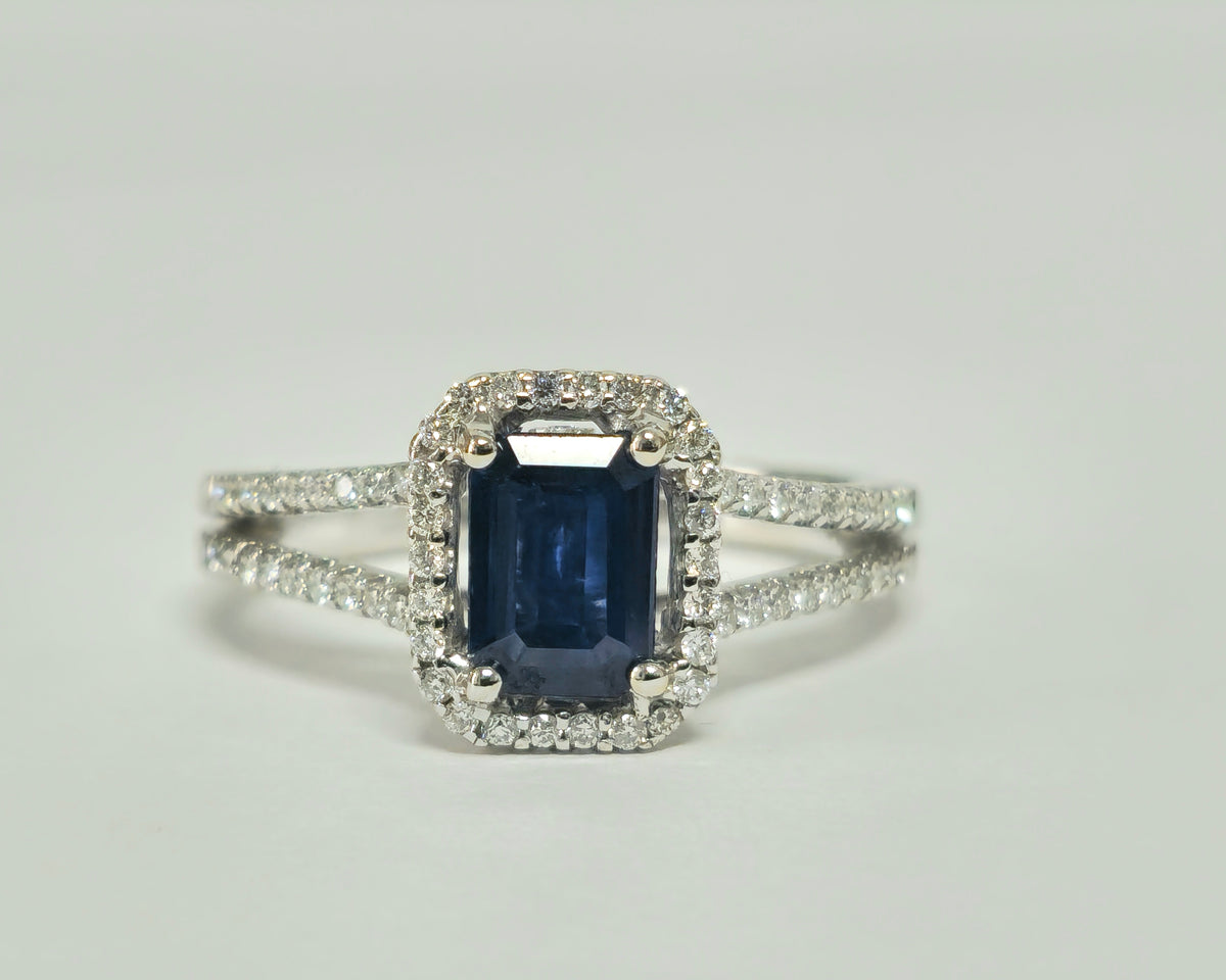 Vintage and art deco style blue sapphire and diamond ring. Perfect fine jewelry ring for her. Metal: 18k white gold....