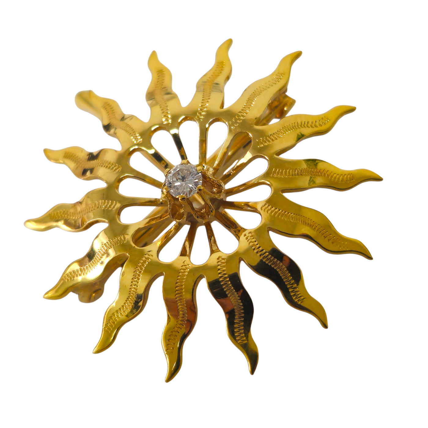Vintage Sun Motif Diamond & 14k Gold Pendant For Her